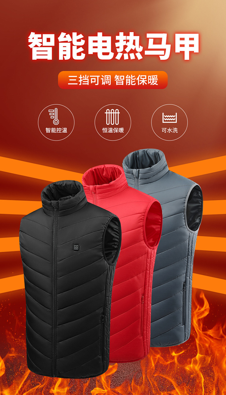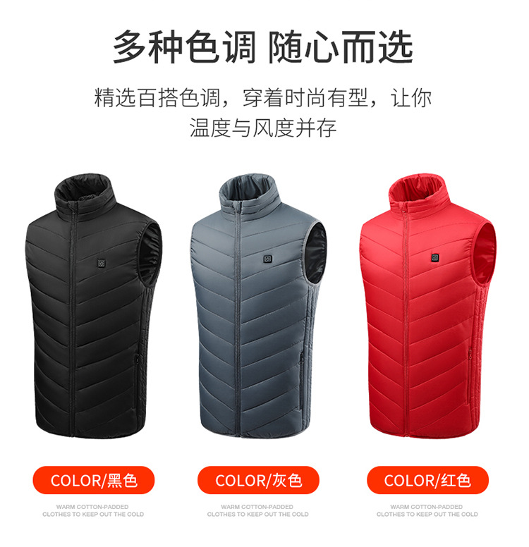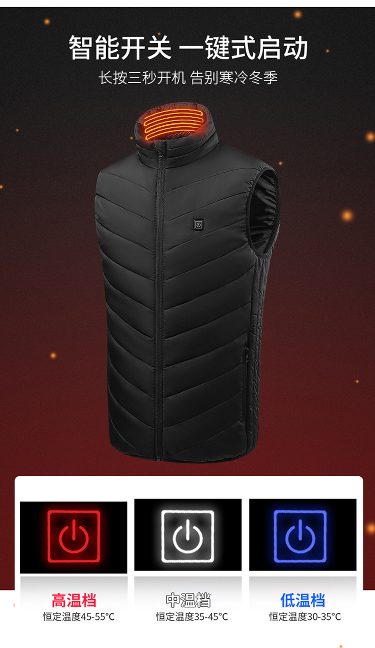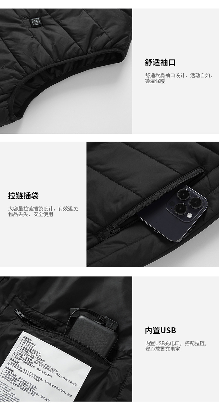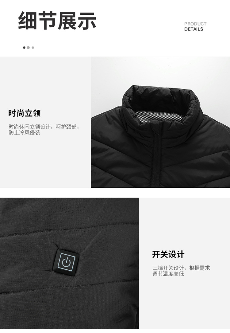 가을과 겨울 새로운 남자의 스탠드 칼라 가열면 조끼 탄소 섬유 전기 조끼 USB 안전 지능형 일정한 온도 가열 세트