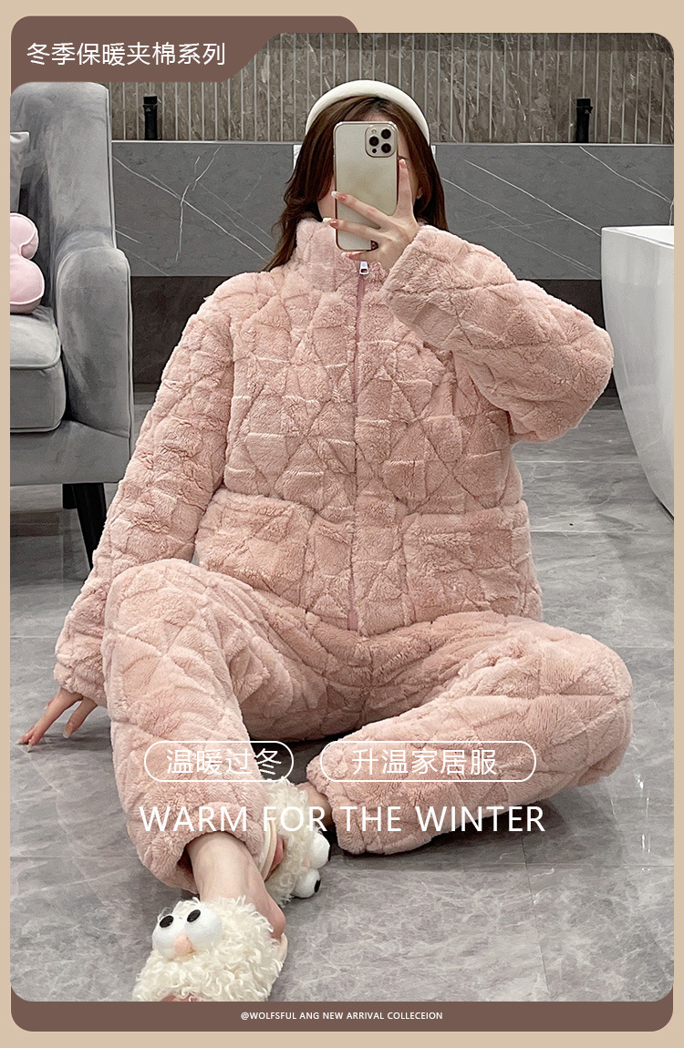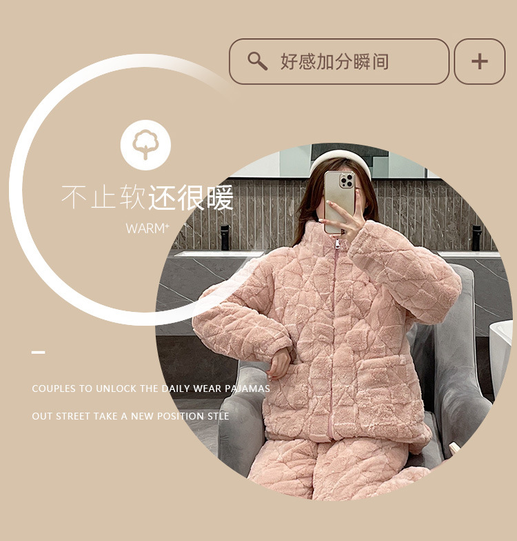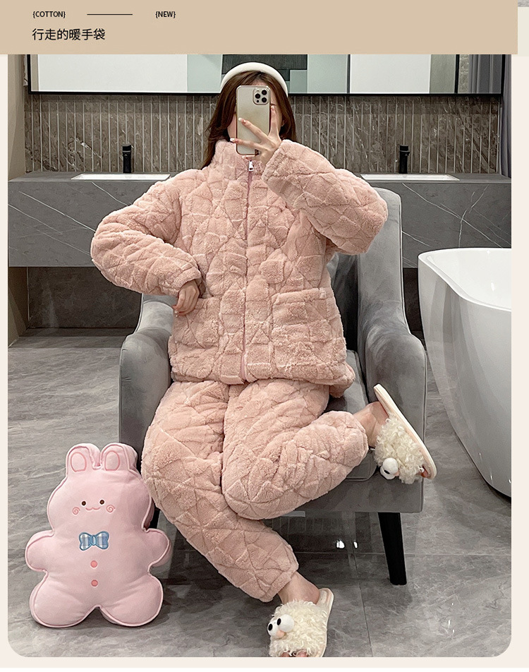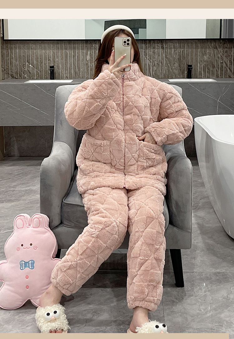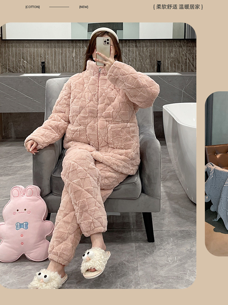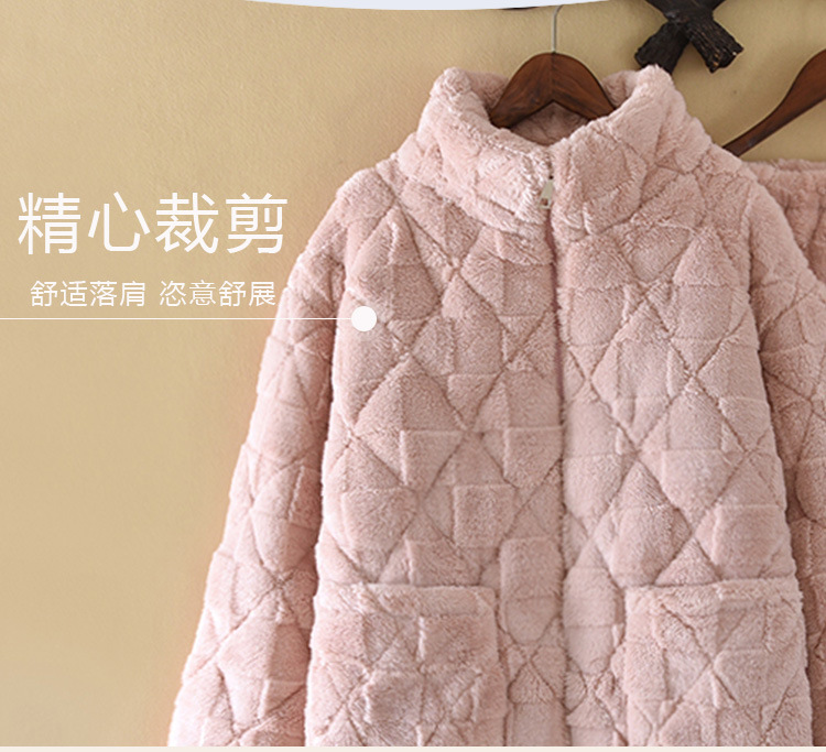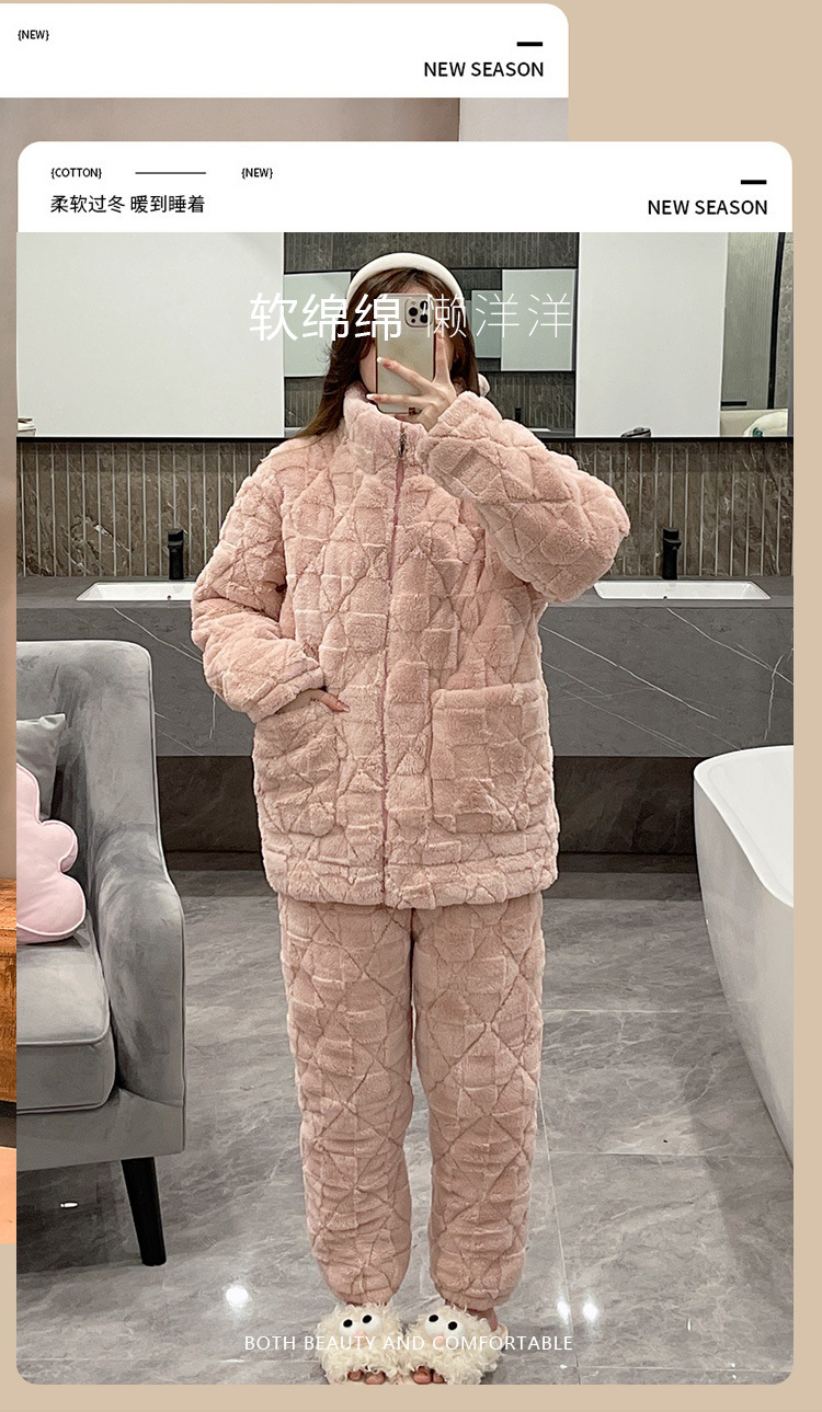 플러스 사이즈 지퍼 산호 양털 커플 잠옷 여자의 가을과 겨울 3 층 퀼트 남자의 따뜻한 두꺼운 가정 옷스토어 가기
