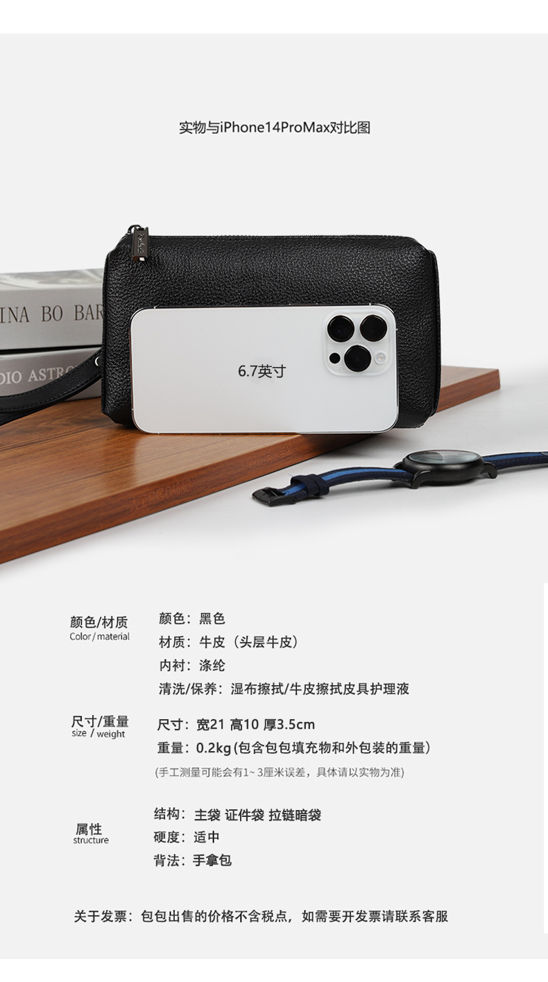 남성용 천연가죽 핸드백, 부드러운 가죽 클러치백, 소가죽 장지갑, 캐주얼 휴대폰 가방, 심플한 핸드백, 크로스보더스토어 가기