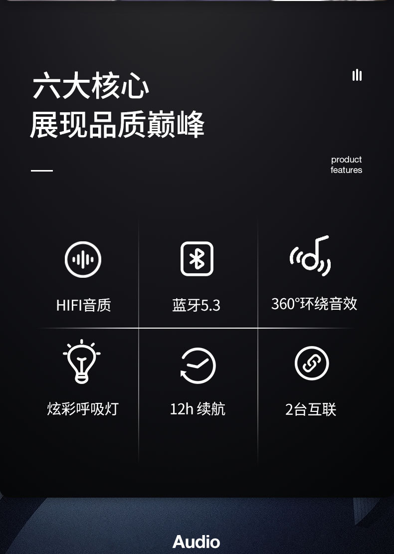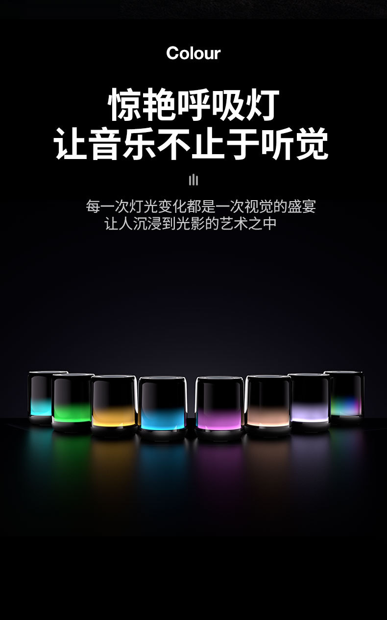 1.梦幻光效,随乐律动,令人惊艳的高分辨率360°LED光效,随着音乐律动且变幻无穷,让音乐看得到。