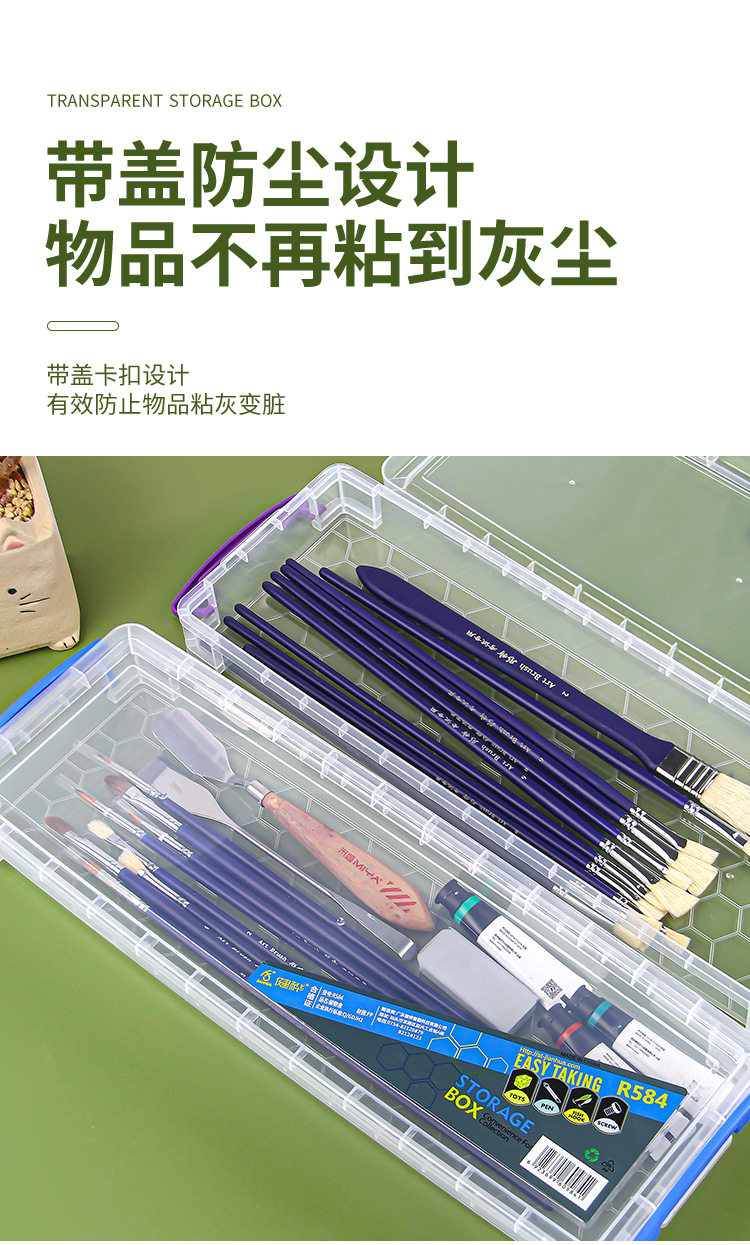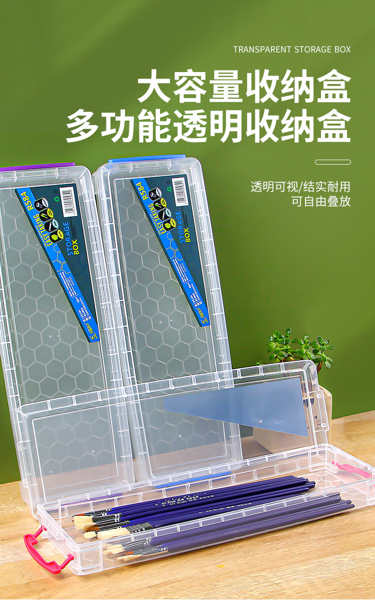 직사각형 투명 보관함 수채화 구 아슈 펜 상자 문구 상자 길어 확대 두꺼운 컬러 연필 상자