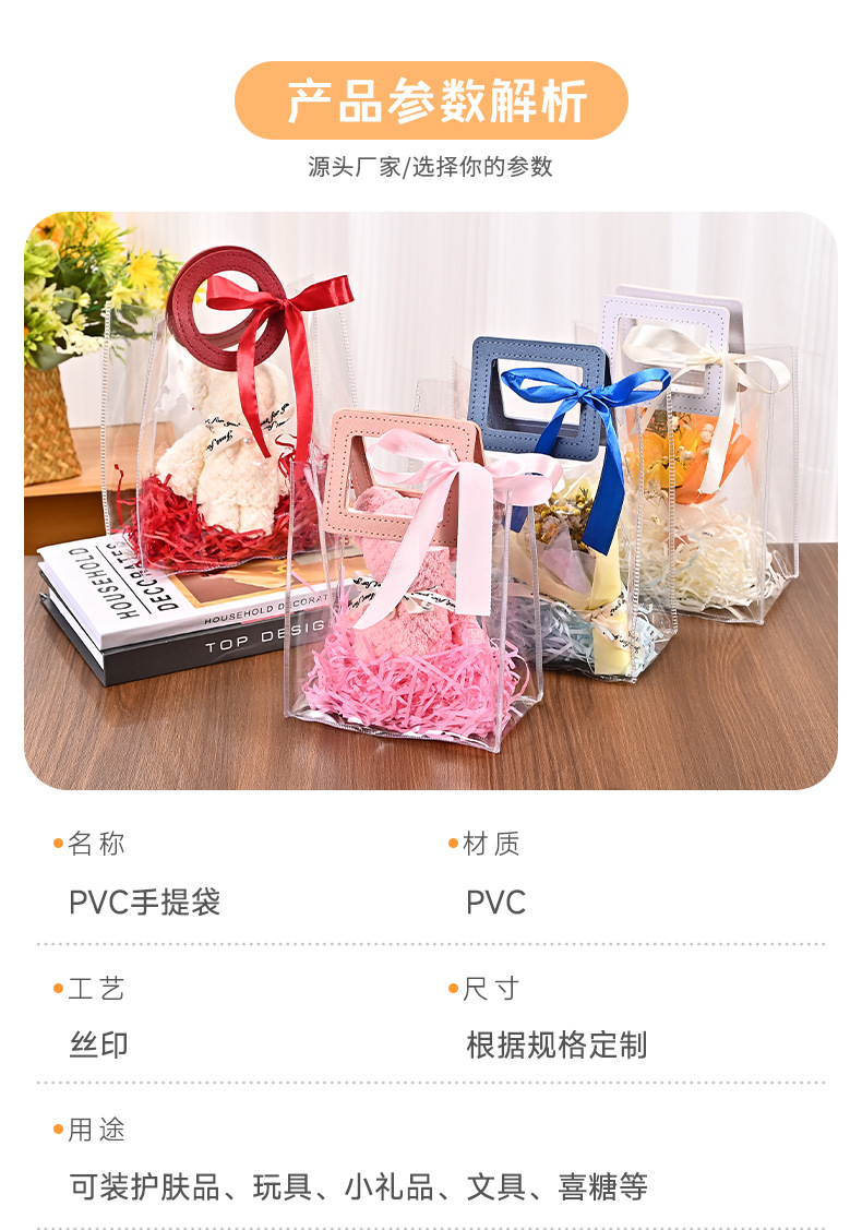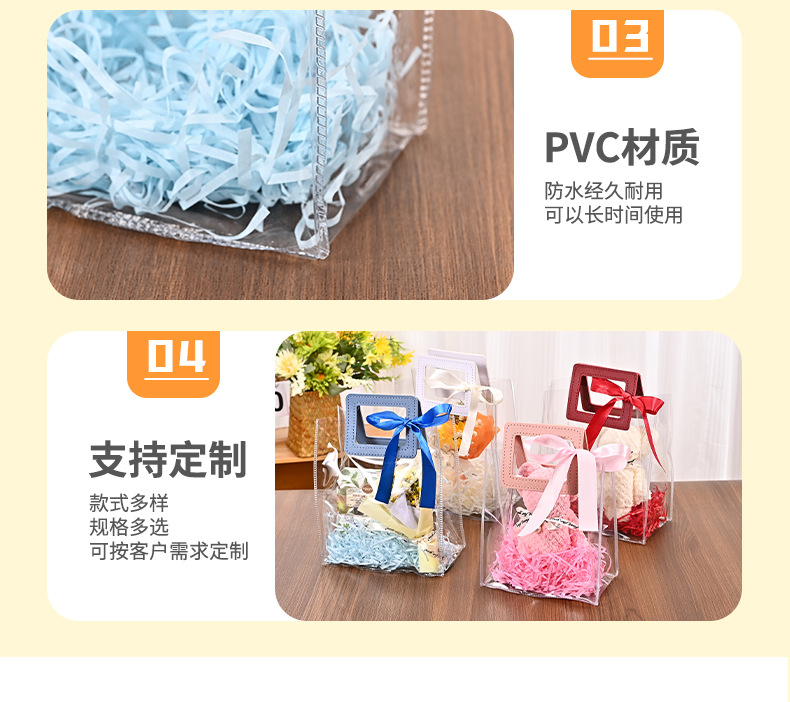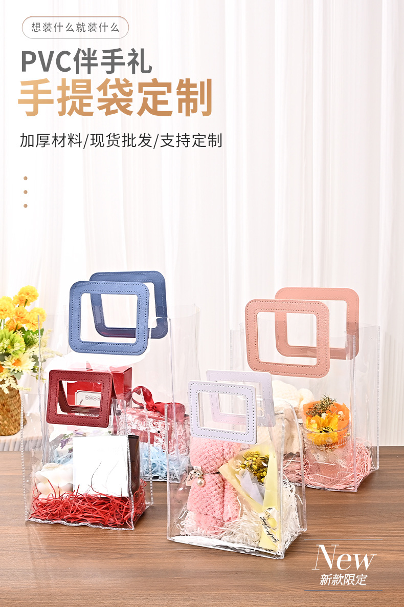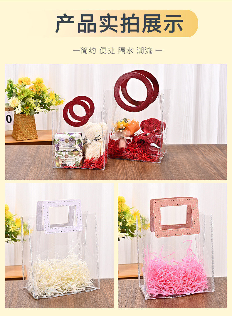 PVC 투명 핸드백 하이 엔드 중국 발렌타인 데이 웨딩 선물 가방 웨딩 사탕 플라스틱 핸드백스토어 가기