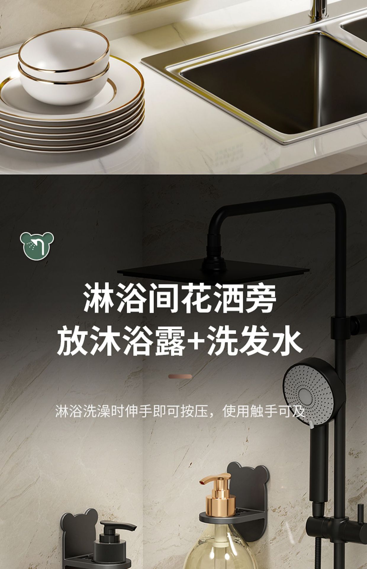 샤워 젤 스토리지 랙 펀치 프리 세제 걸이 욕실 샴푸 손 소독제 벽걸이 욕실 수납