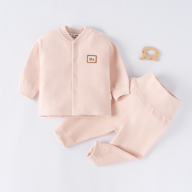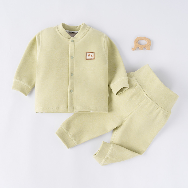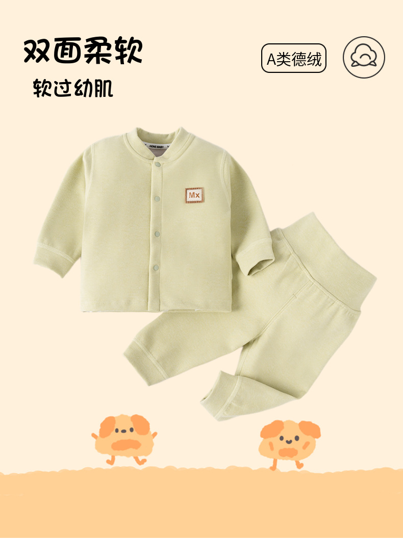 아기의 내복 호일 가을 옷과 바지 소년 소녀를위한 높은 허리 배꼽 보호 따뜻한 옷 아기의 따뜻한 벨벳 세트 홈 옷