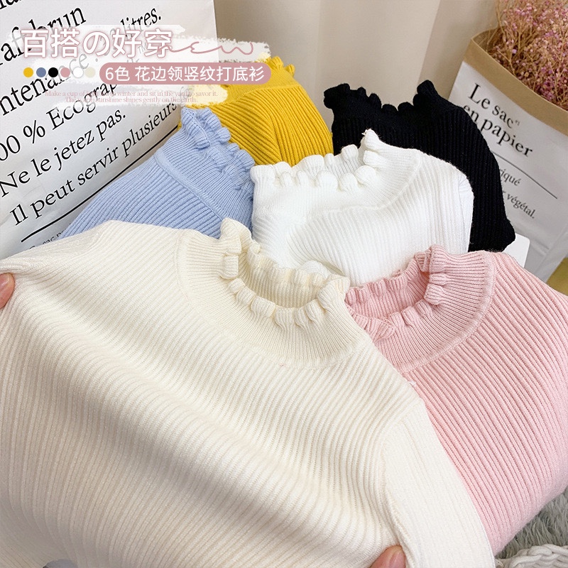 소녀 스웨터 서양식 2024 가을과 겨울 폭발 나무 귀 가장자리 소녀 아동복 니트웨어 아동복 이너 재킷스토어 가기