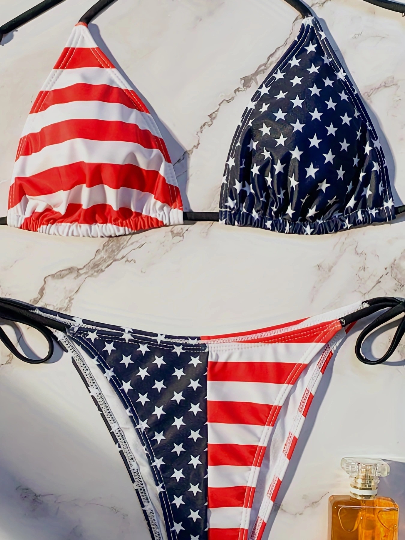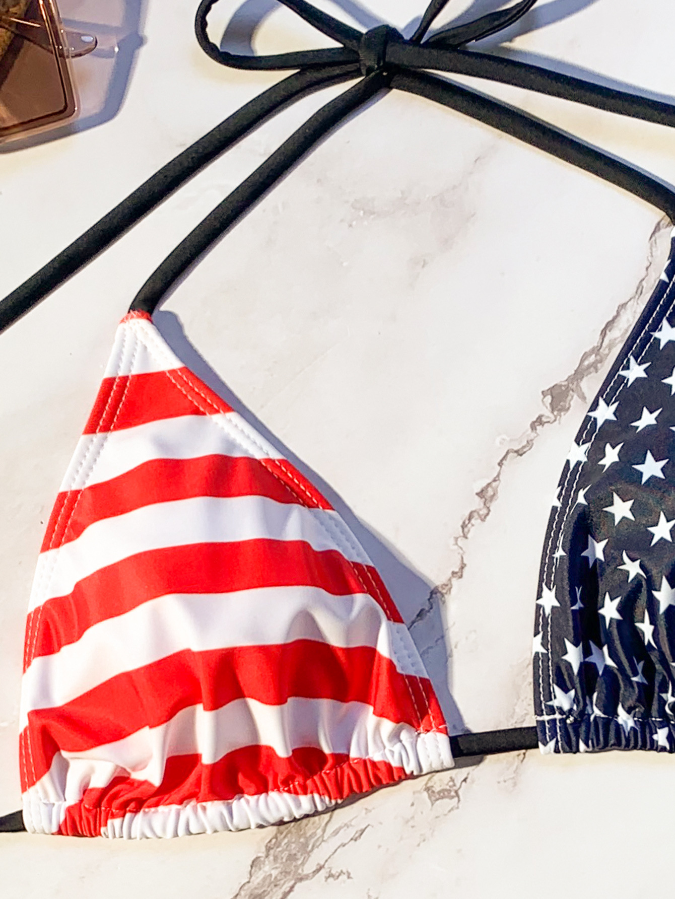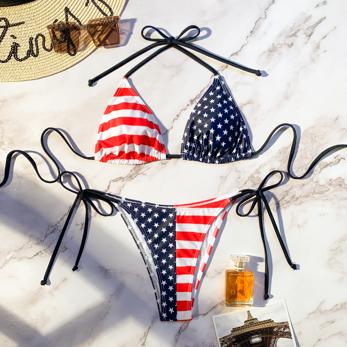 23 새로운 패션 스트라이프 유럽과 미국 3 점 플래그 인쇄 테 더 섹시한 비키니 분할 수영복스토어 가기