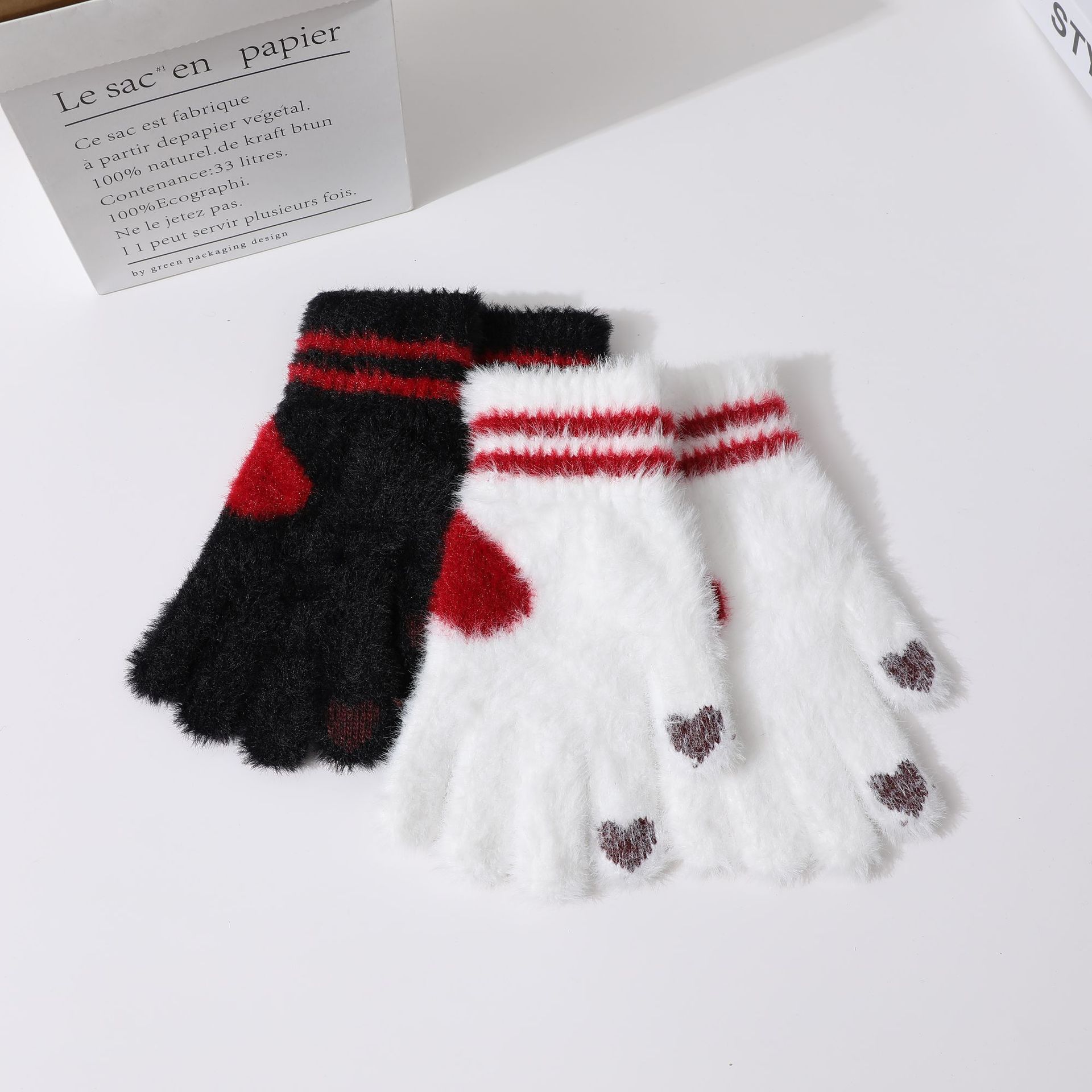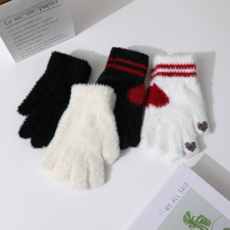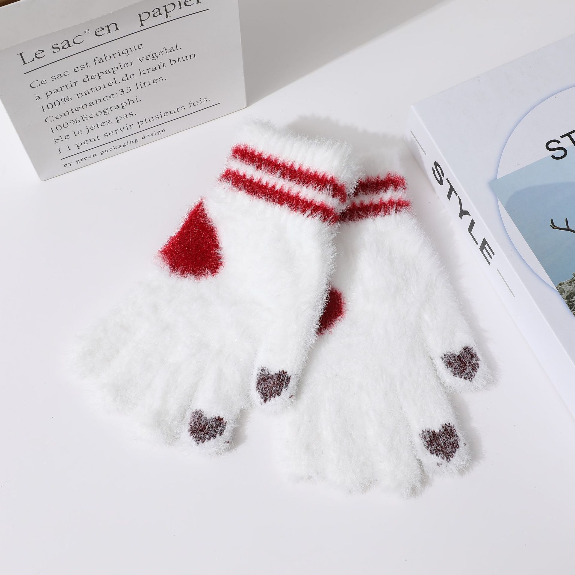 일본 여성의 가을과 겨울 한국 스타일 학생 귀여운 사랑 울 니트 터치 스크린 기모 두꺼운 따뜻한 사이클링 장갑
