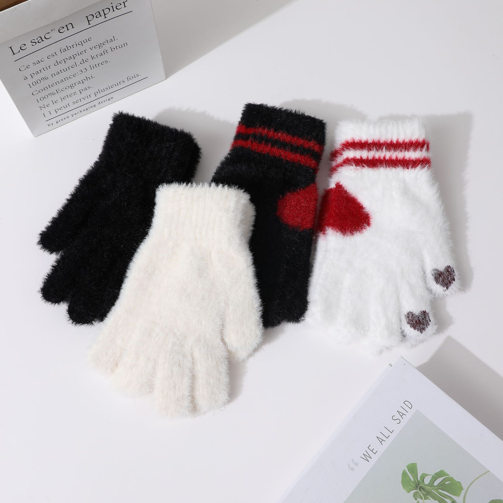 일본 여성의 가을과 겨울 한국 스타일 학생 귀여운 사랑 울 니트 터치 스크린 기모 두꺼운 따뜻한 사이클링 장갑스토어 가기