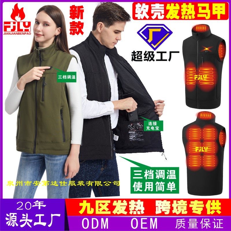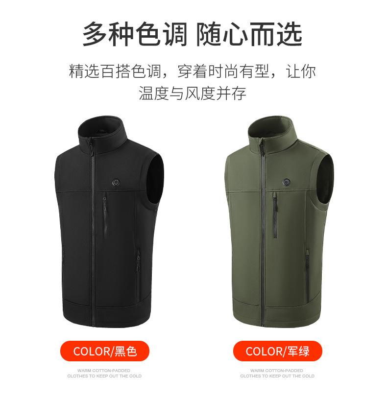 국경 간 인기 남성 스탠드 칼라 가열 조끼 면 조끼 전기 가열 조끼 USB 전원 스마트 항온 가열 면 코트스토어 가기