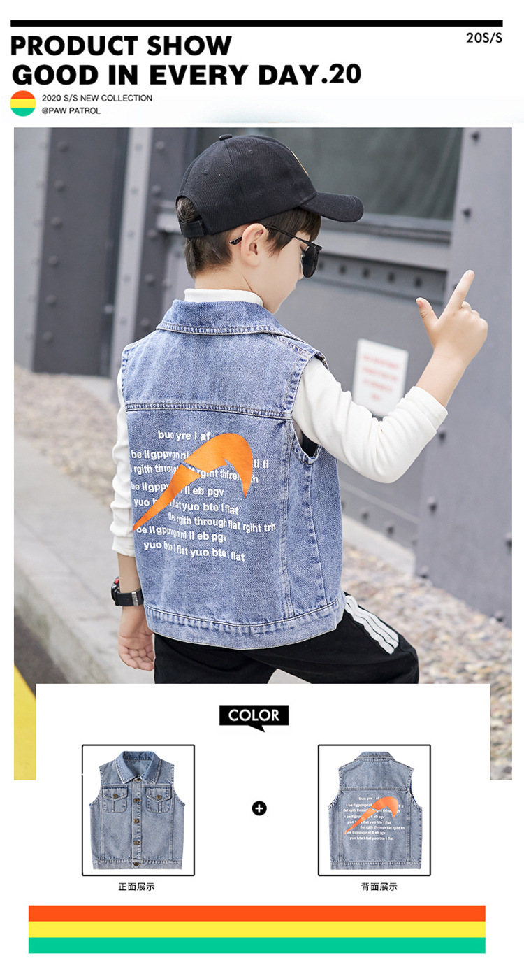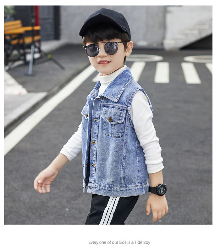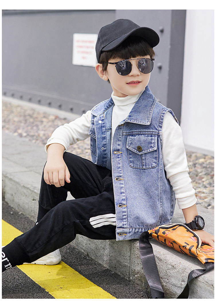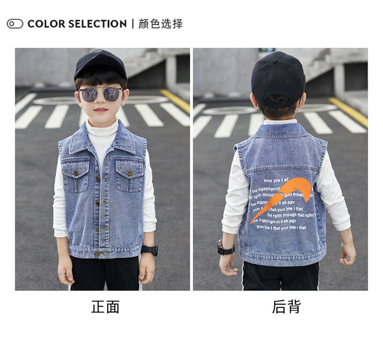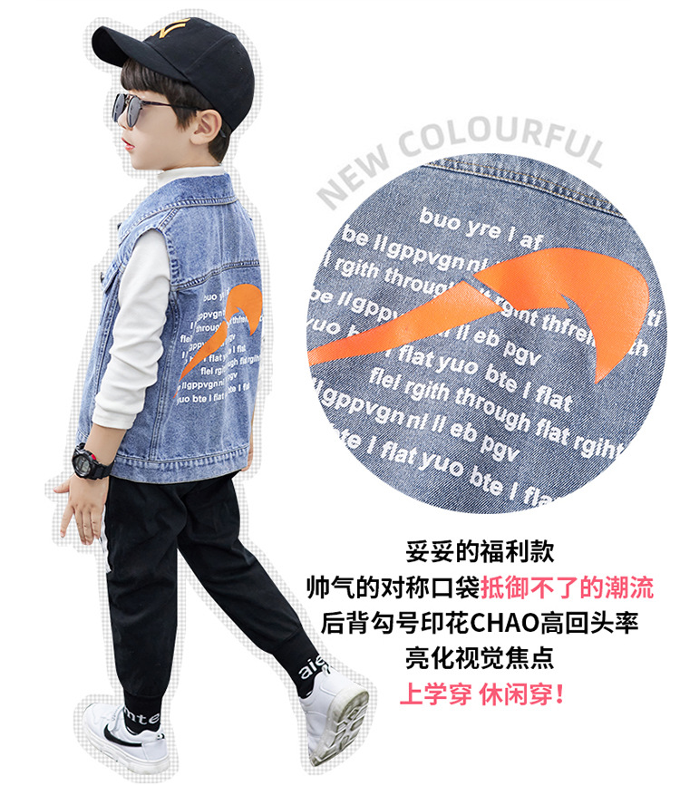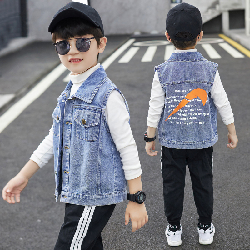 어린이 의류 소년 데님 조끼 소년 봄과 가을 코트 2023 큰 어린이 유행 가을 도매 조끼스토어 가기