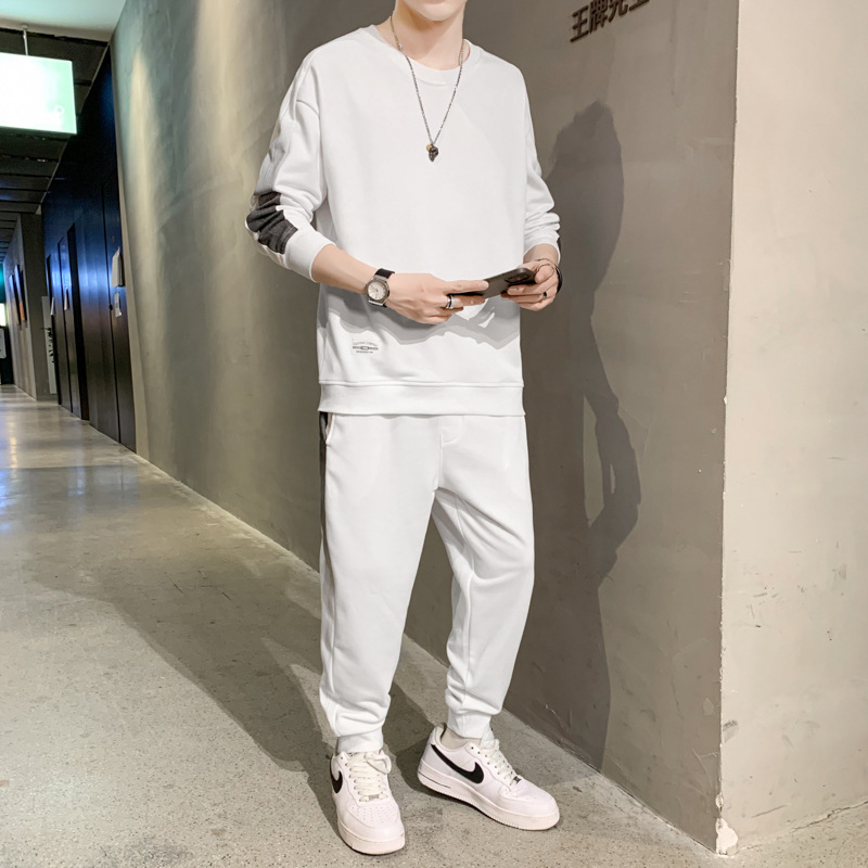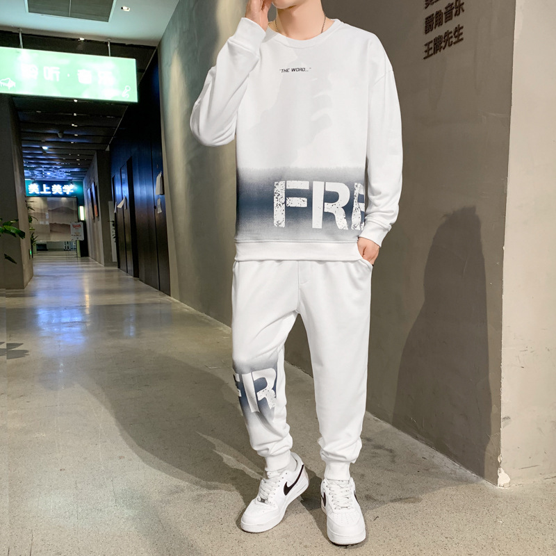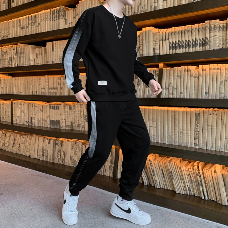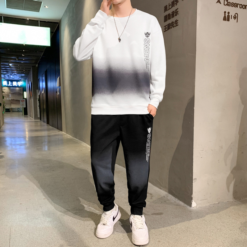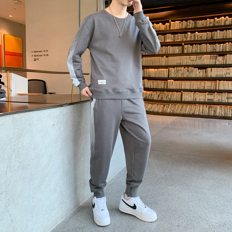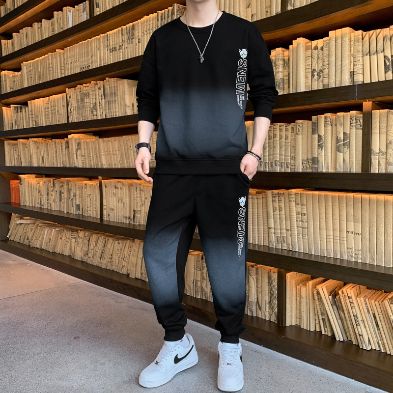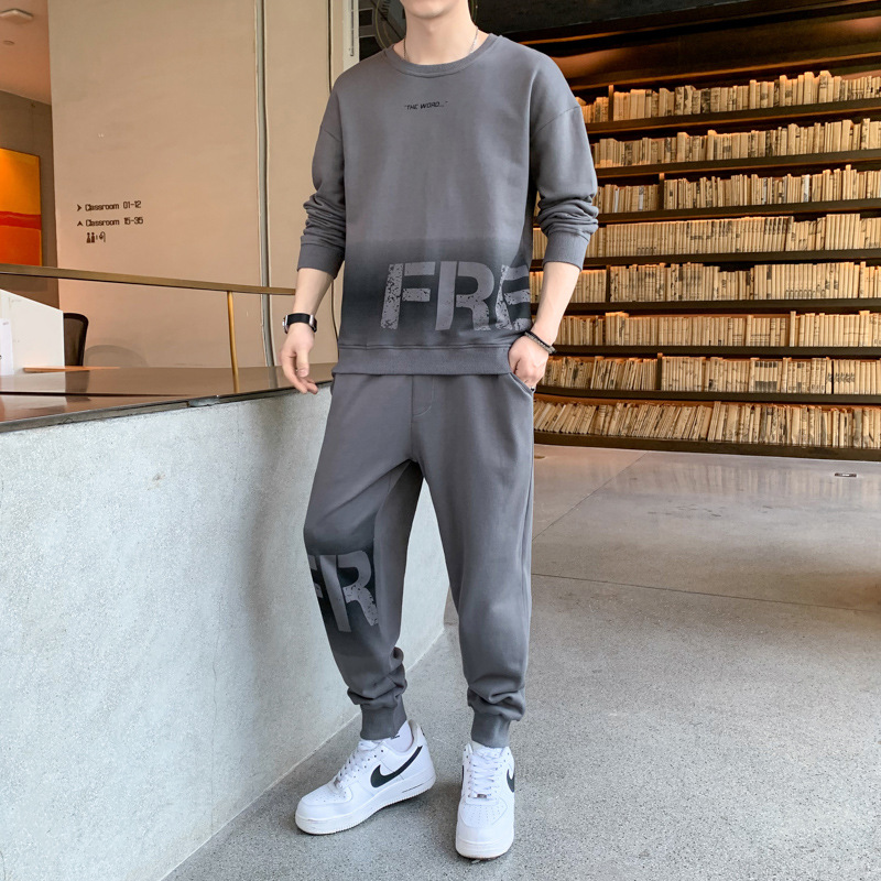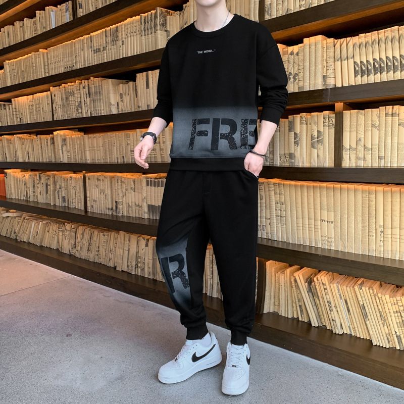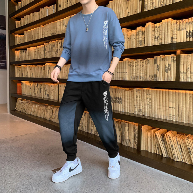 캐주얼 스포츠 세트 남자 2024 년 새 봄과 가을 느슨한 긴팔 크루 넥 땀 잘 생긴 남자 투피스 세트스토어 가기