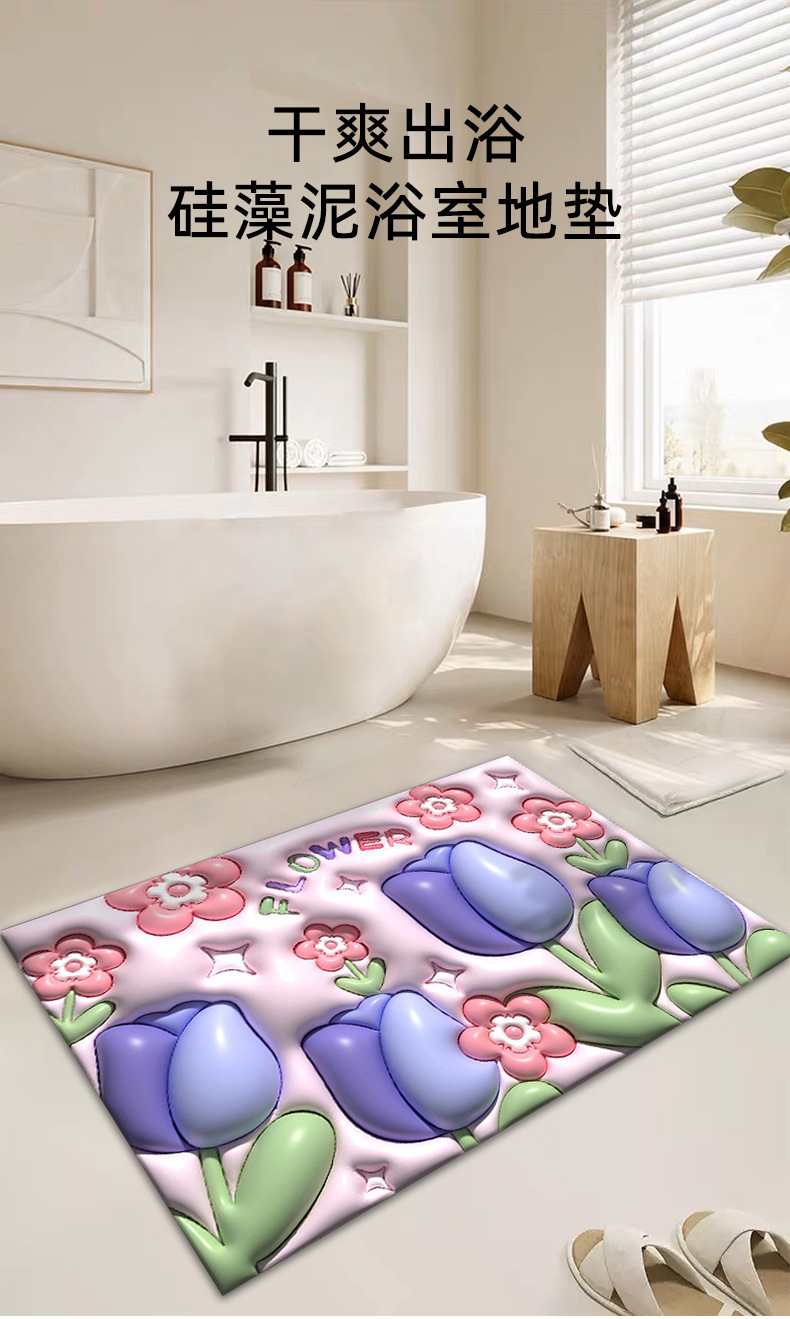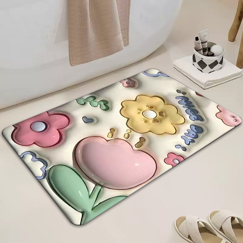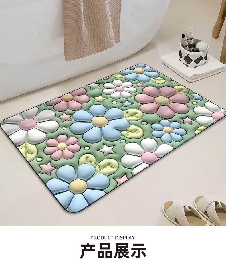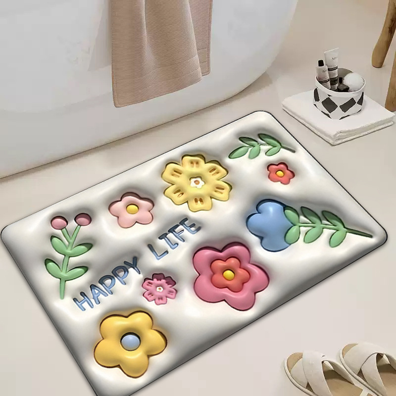제조업체 바닥 매트 3D 입체 팽창 꽃무늬 규조토 발매트 만화 화장실 욕실 입구 흡수 방지 미끄럼 방지 매트스토어 가기