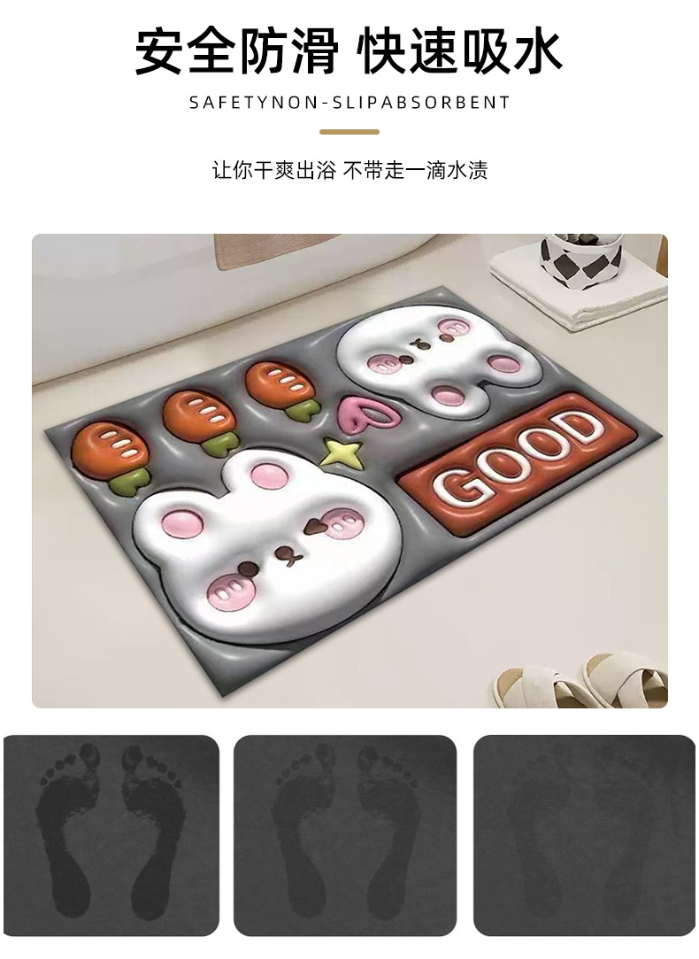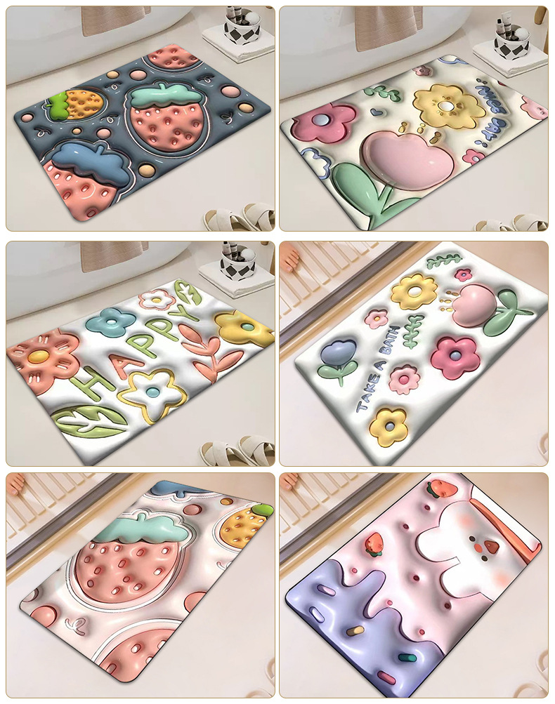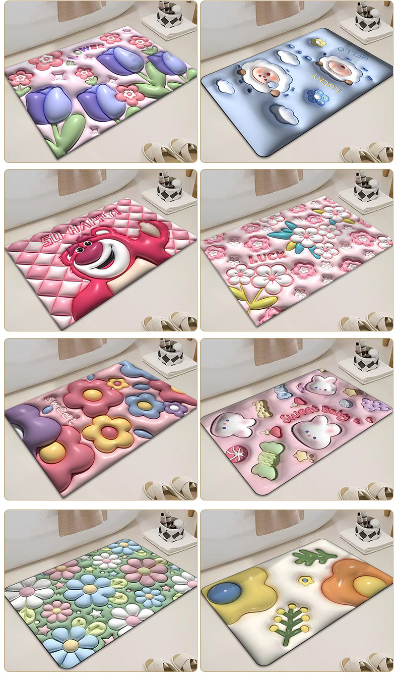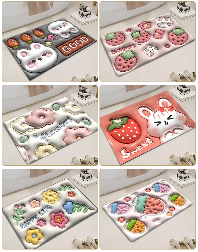 제조업체 바닥 매트 3D 입체 팽창 꽃무늬 규조토 발매트 만화 화장실 욕실 입구 흡수 방지 미끄럼 방지 매트스토어 가기