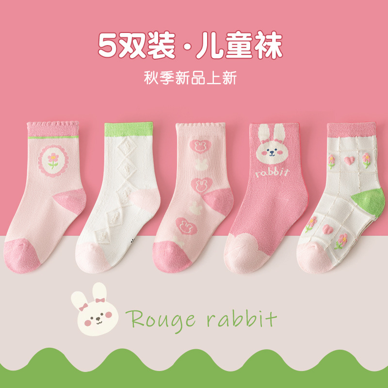봄과 여름 새로운 어린이 양말 뼈없는 학생 캐주얼 중간 튜브면 양말 만화 소년과 소녀 양말 제조 업체 도매스토어 가기