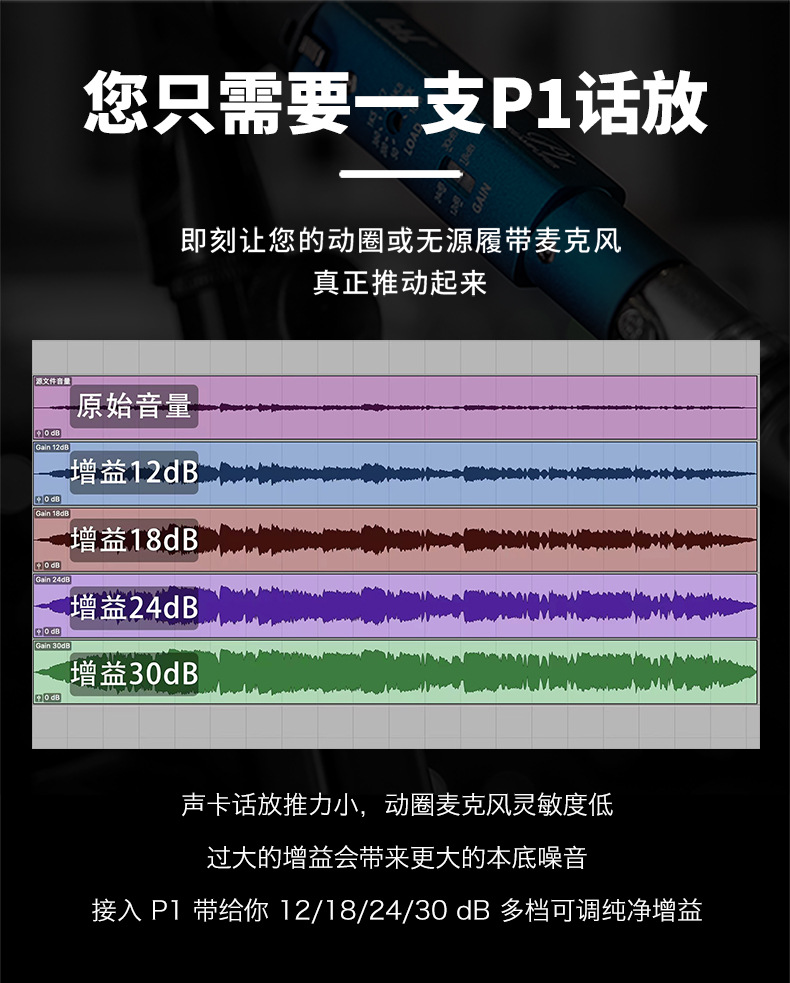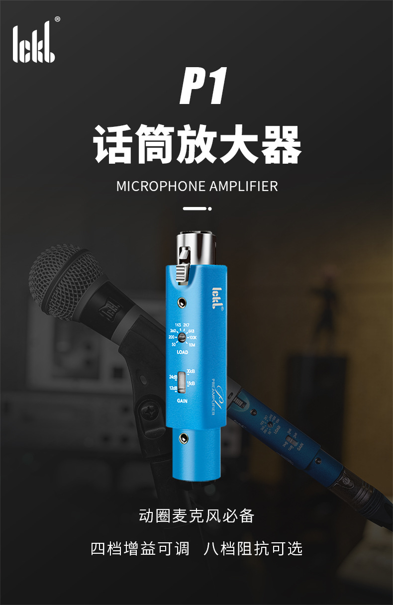 Ickb p1 전문 음성 재생 동적 코일 마이크 볼륨 저소음 녹음 게인 프리 앰프