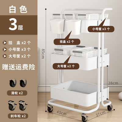 • 3 층 트롤리 화이트 + 2 대형 3 소형 바구니 + 2 걸이 상자 [도르래]]