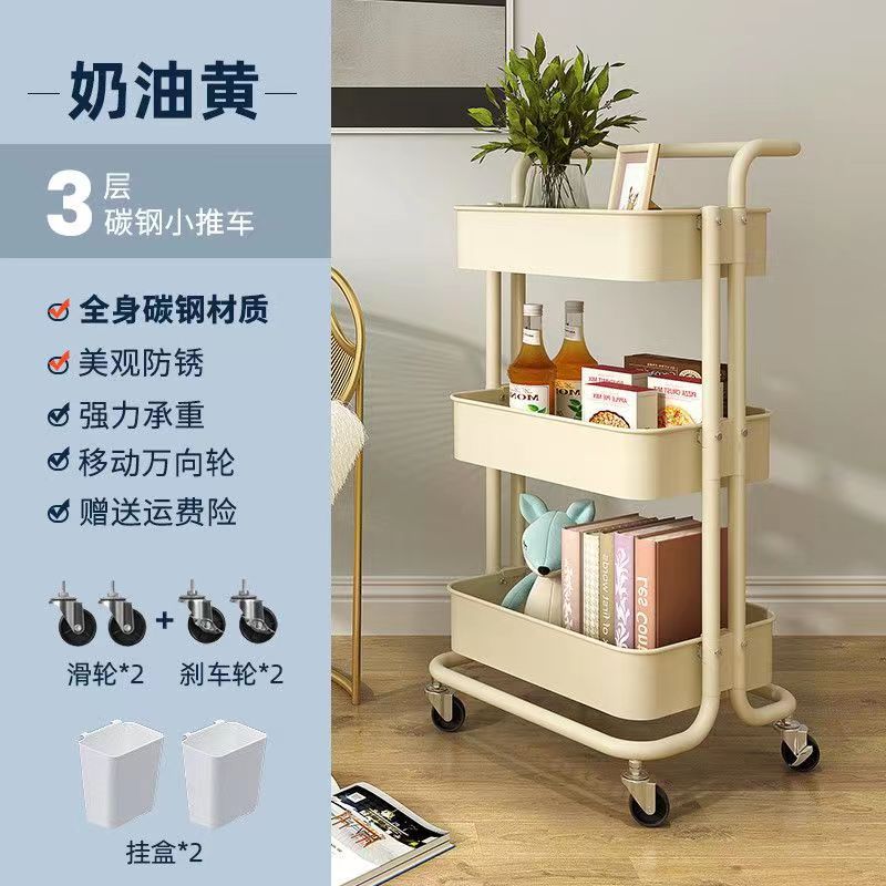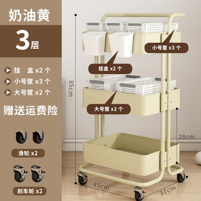 • 3 층 트롤리 우유 옐로우 + 2 큰 3 작은 바구니 + 2 걸이 상자 [풀리]]