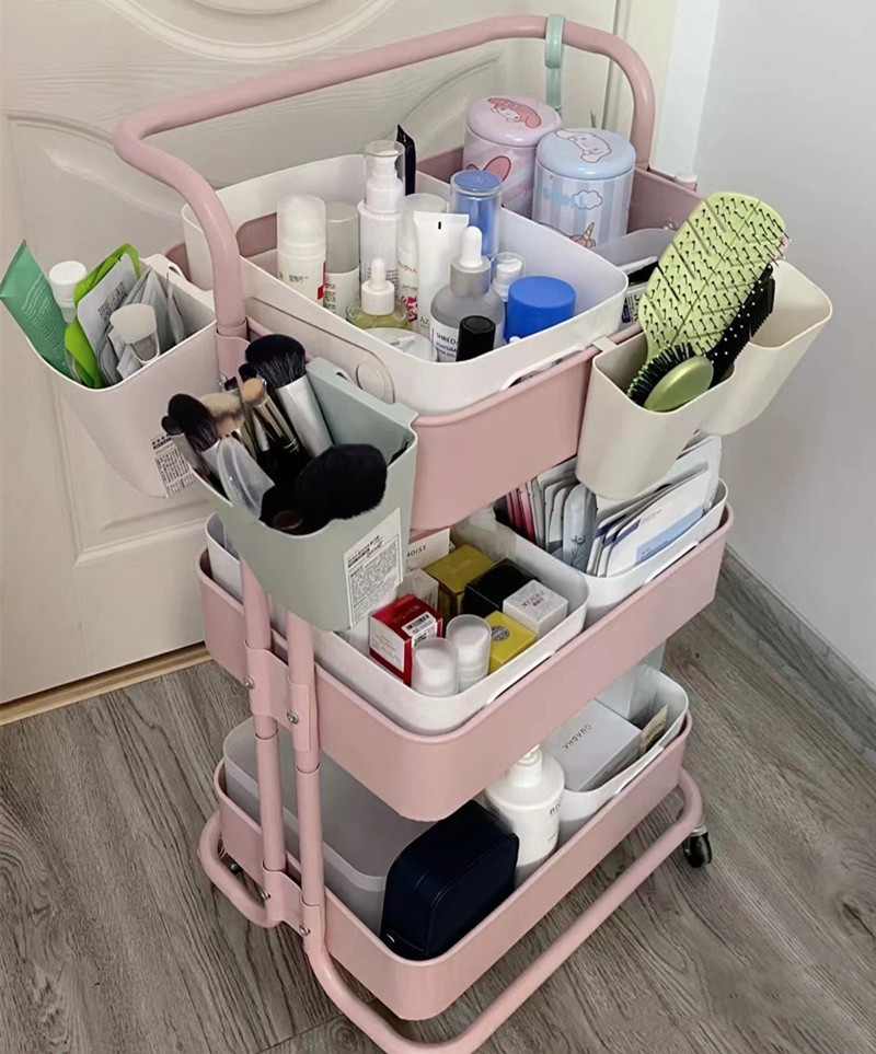 • 3 층 탄소강 트롤리 핑크 [풀리] + 2 행잉 박스