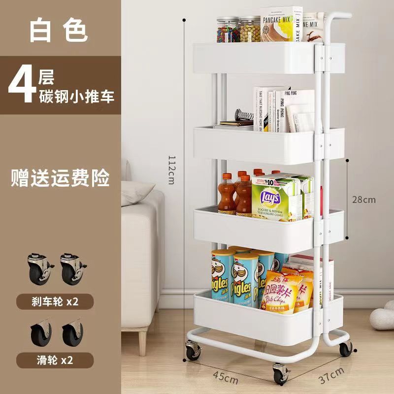 SKU-10-4层碳钢手推车白色【滑轮】_2挂盒