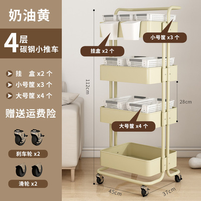 • 4 층 트롤리 우유 옐로우 + 4 큰 3 작은 바구니 + 2 걸이 상자 [도르래]]