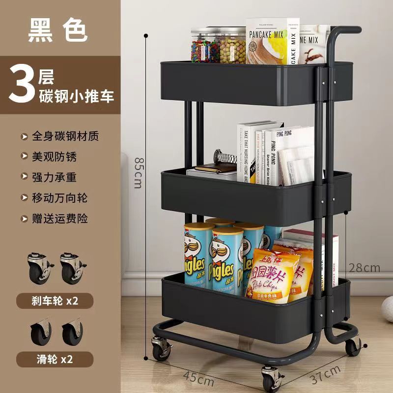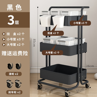 • 3 층 트롤리 블랙 + 2 대형 3 소형 바구니 + 2 걸이 상자 [풀리]]
