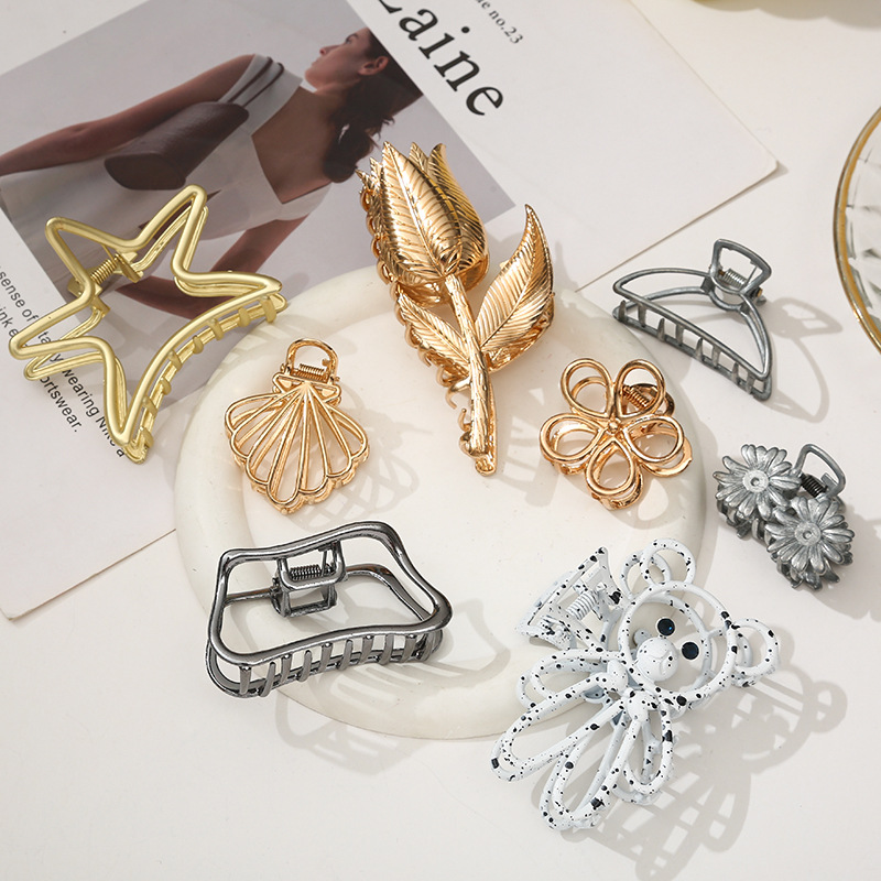 새로운 간단한 금속 헤어 클립 머리 장식 발톱 클립 큰 발톱 상어 클립 그물 빨간 앞머리 클립 뒤 머리 머리핀 도매스토어 가기
