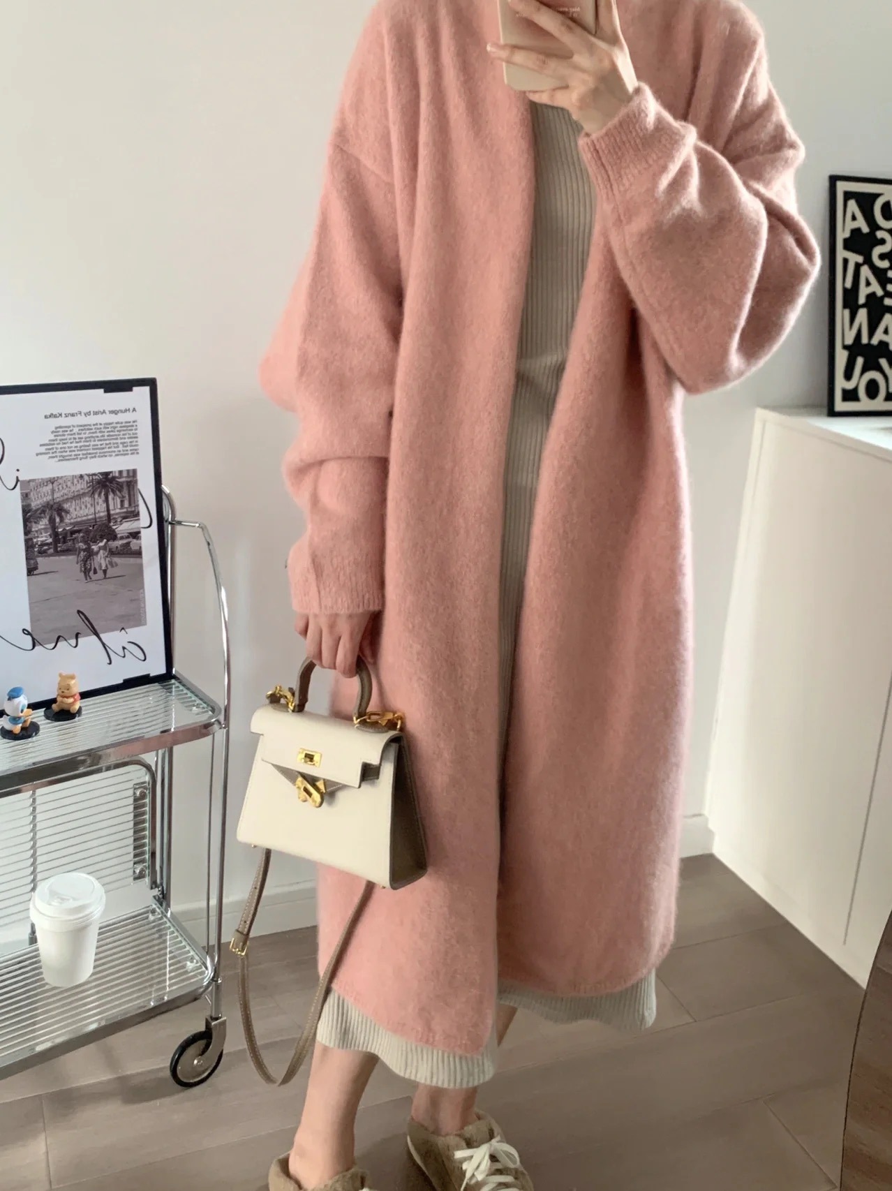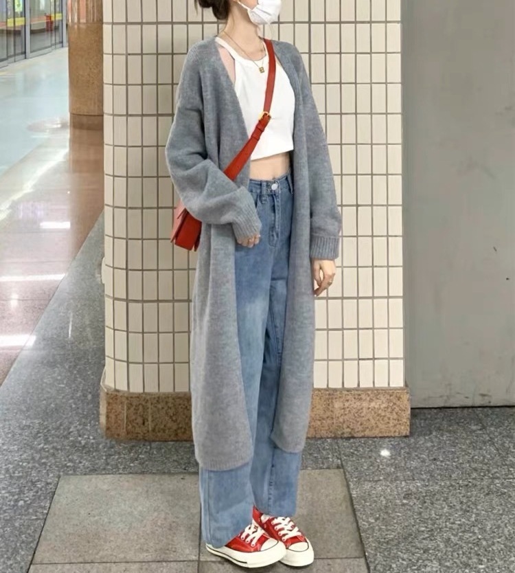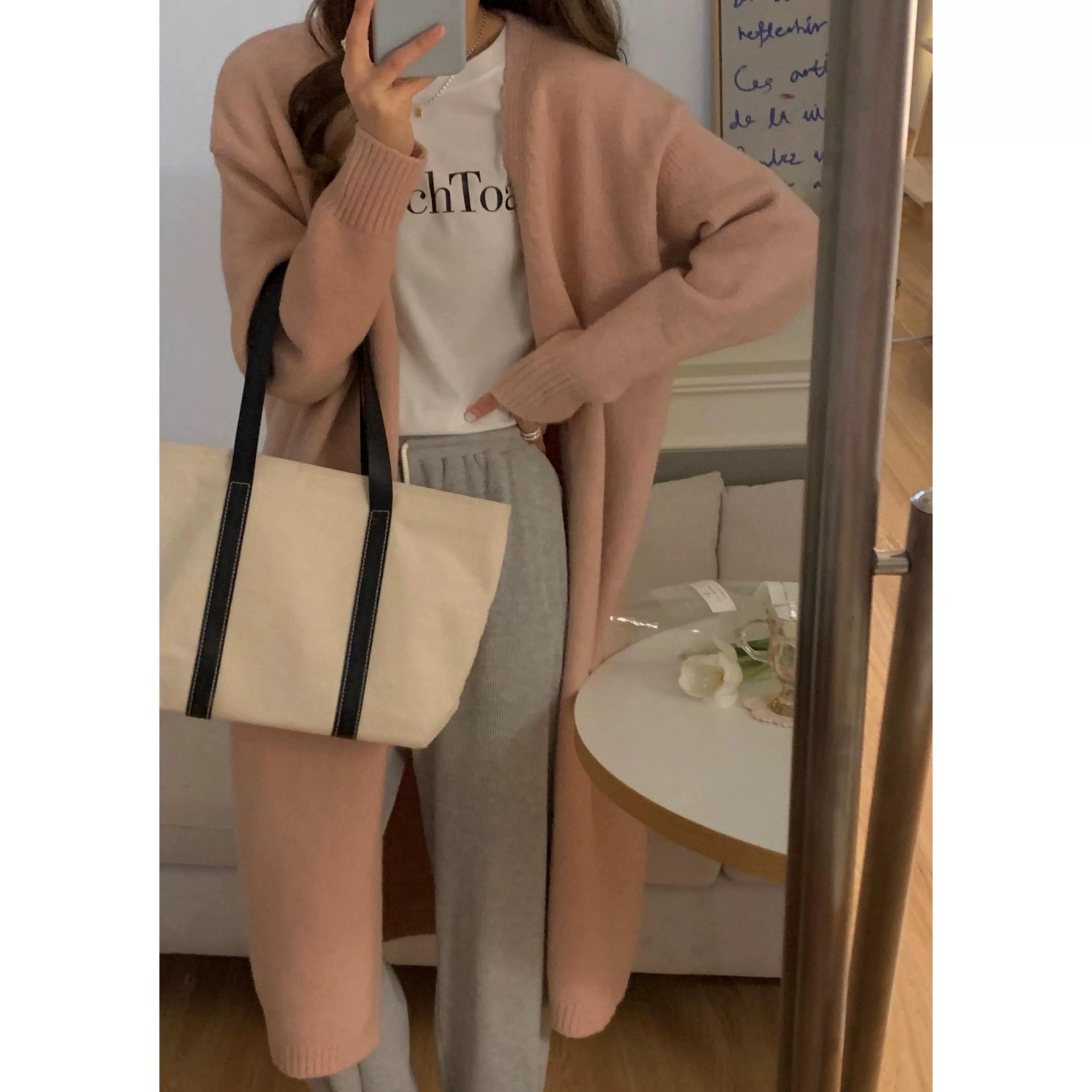 가을/겨울 롱 니트 카디건 여성 한국 캐주얼 레이지 스타일 니하이 브이넥 패딩 스웨터 코트 158-101