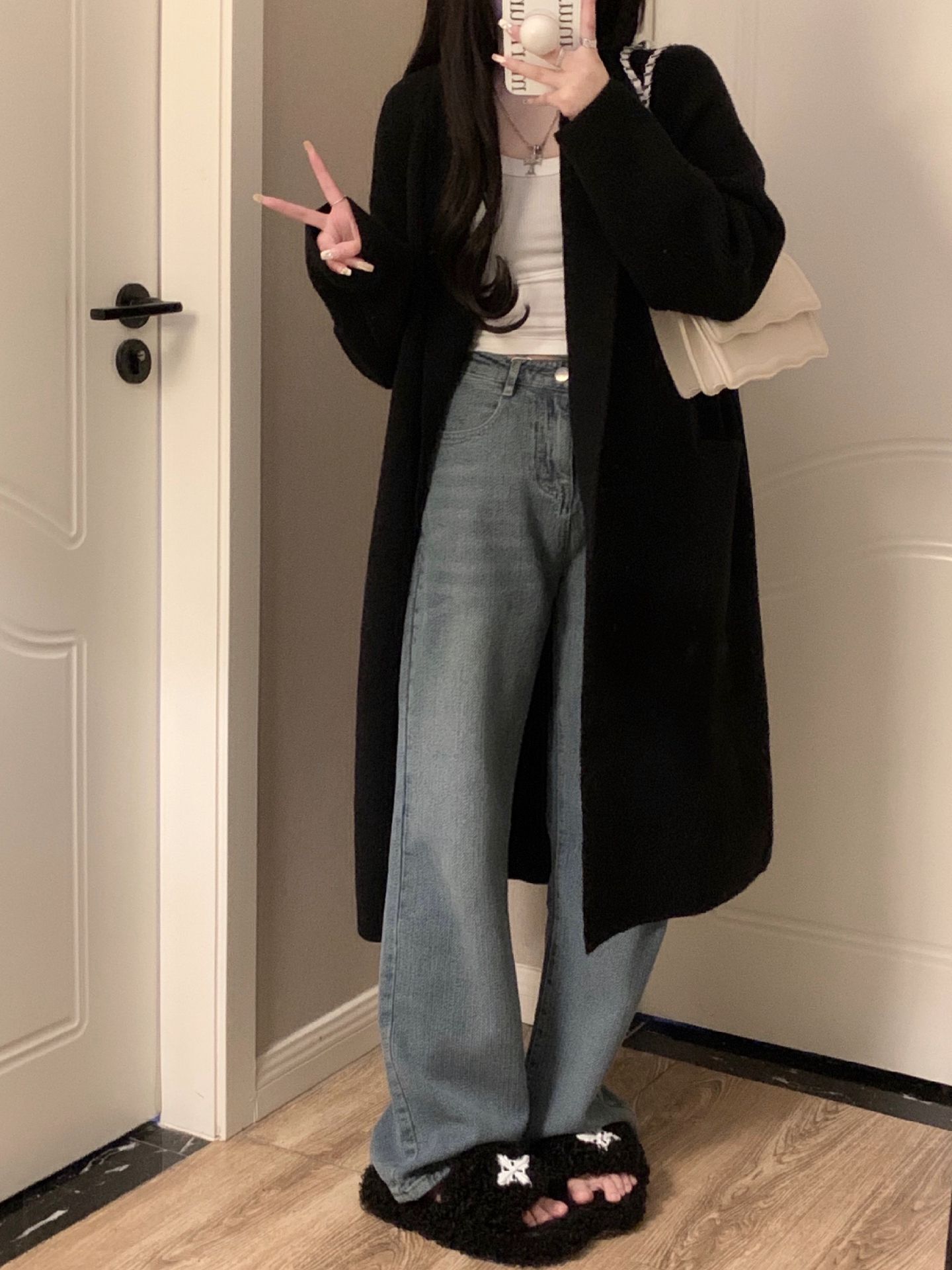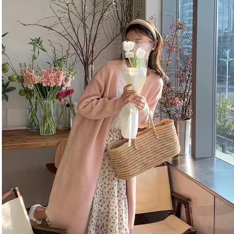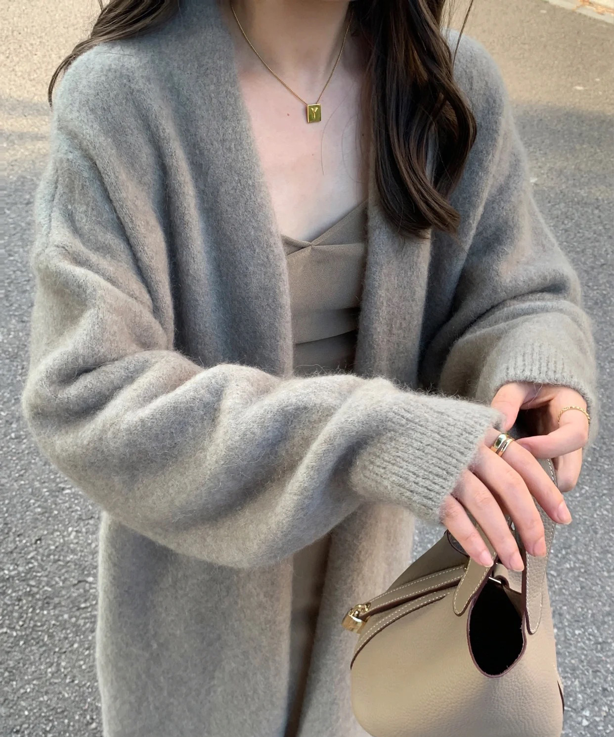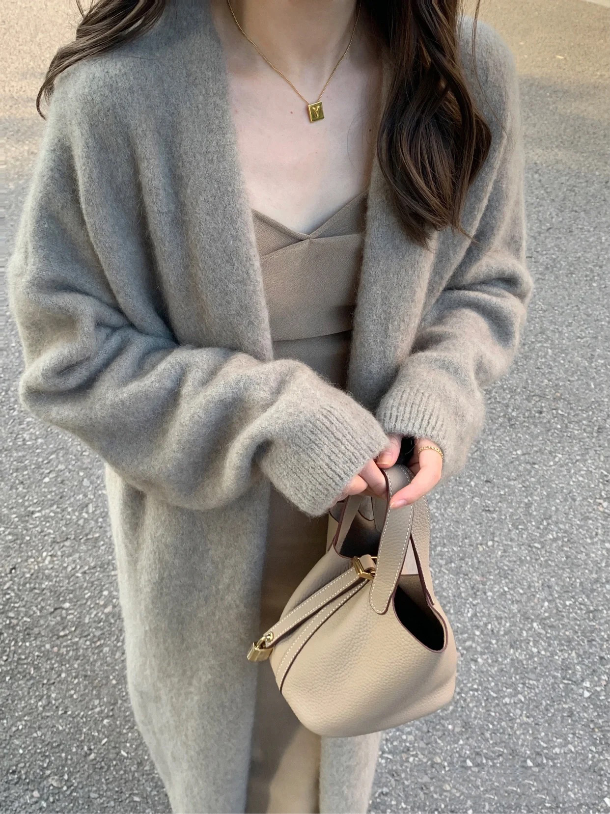 가을/겨울 롱 니트 카디건 여성 한국 캐주얼 레이지 스타일 니하이 브이넥 패딩 스웨터 코트 158-101