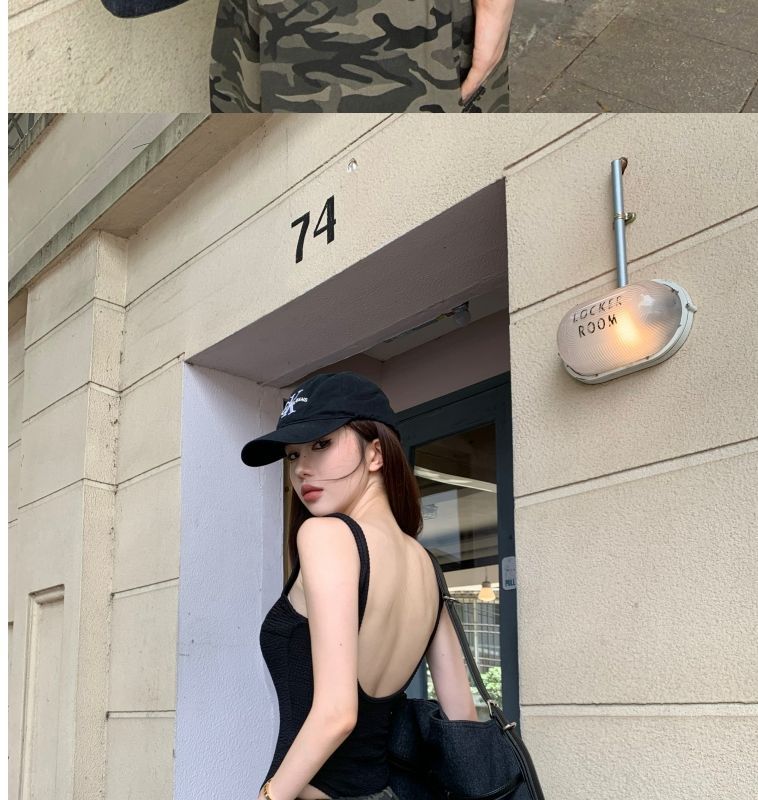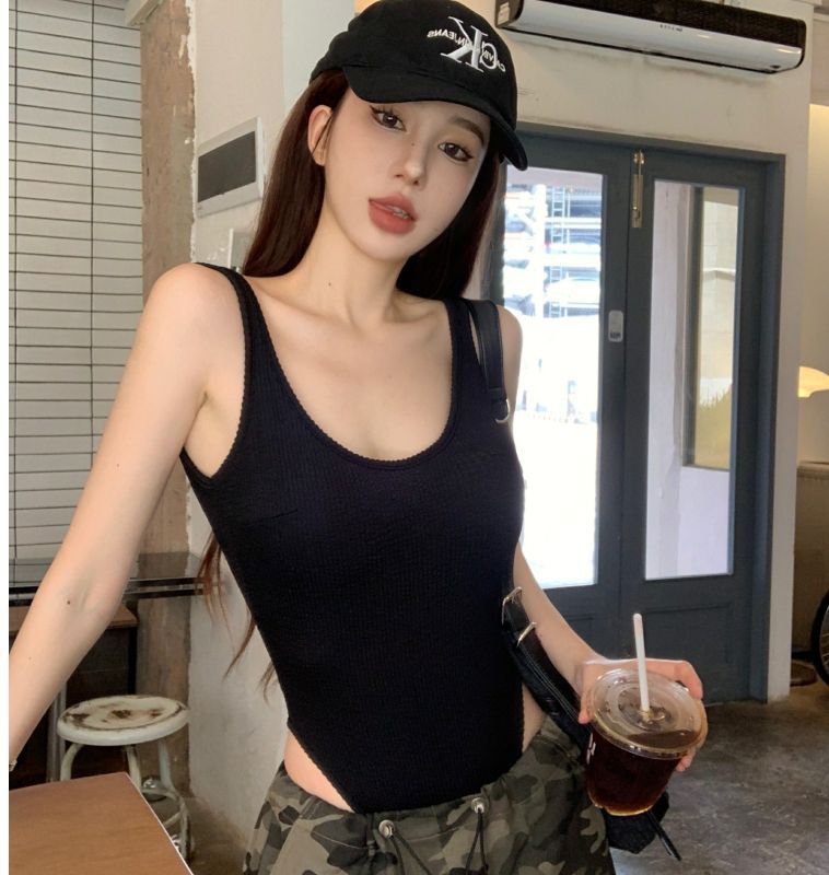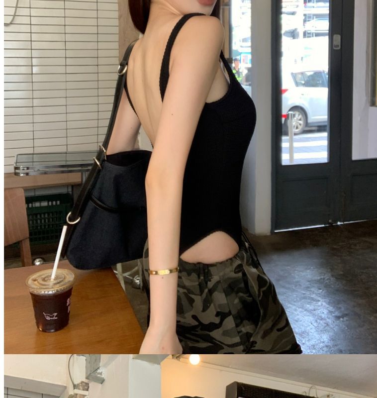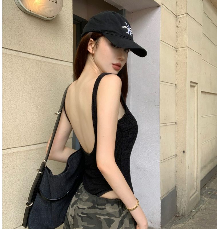 아메리칸 스타일 레트로 핫 걸 원피스 캐미솔 여성용 여름 착용 유럽과 미국 스타일 아름다운 등 블랙 등이없는 탑
