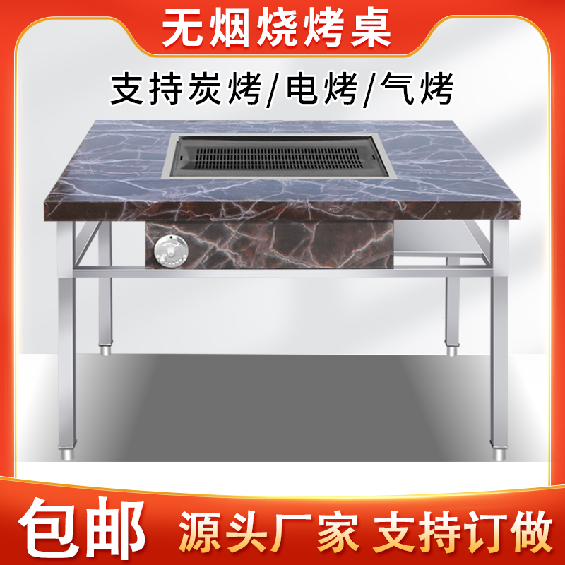 무연 바베큐 테이블 상업용 스테인레스 스틸 셀프 서비스 바베큐 그릴 야외 가정용 다기능 바베큐 테이블스토어 가기