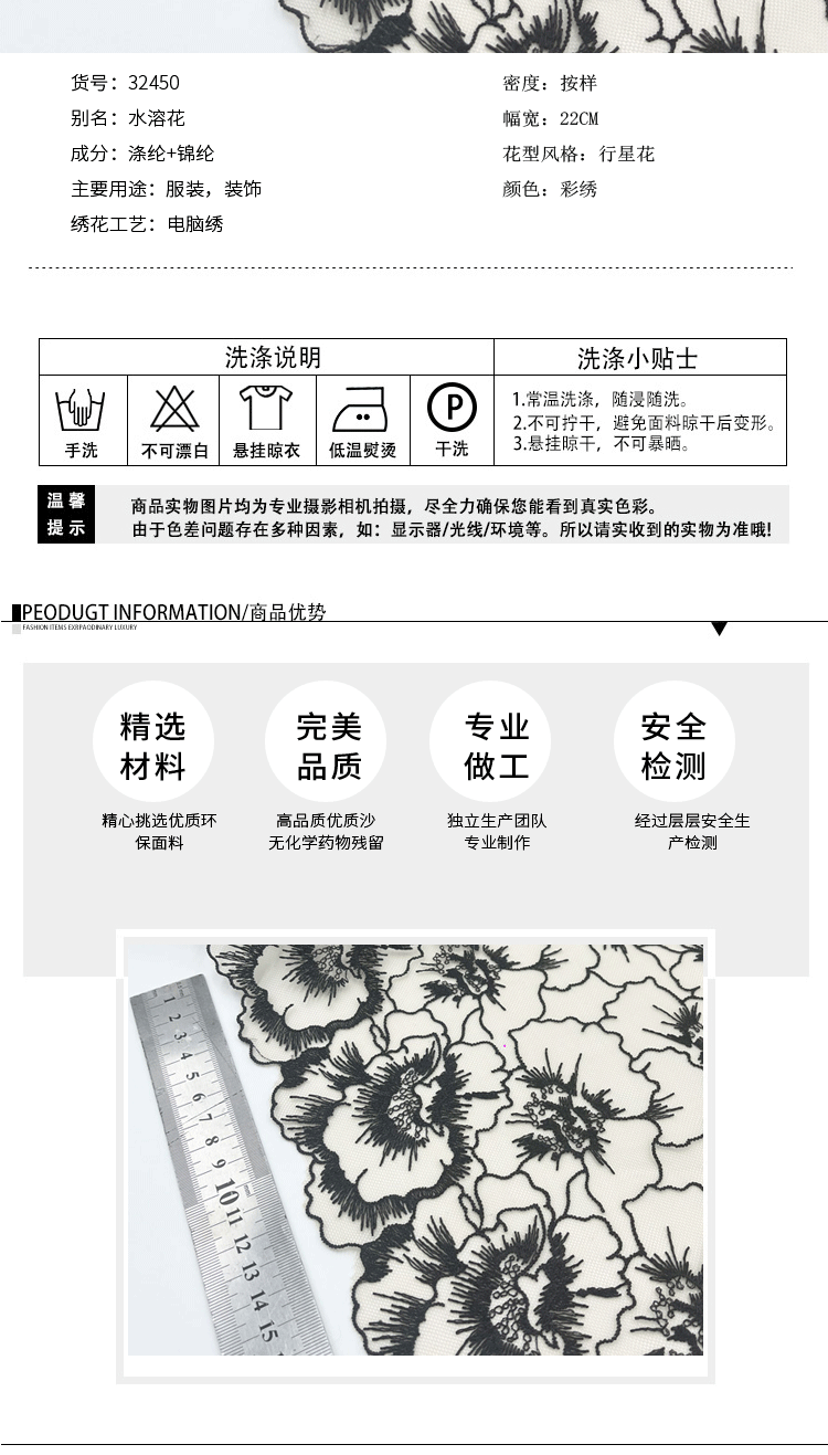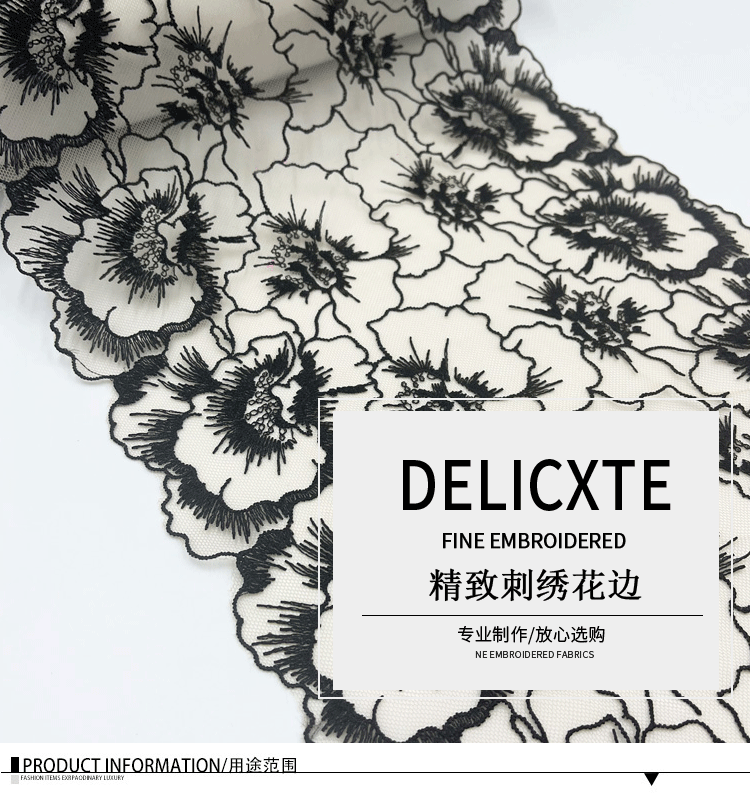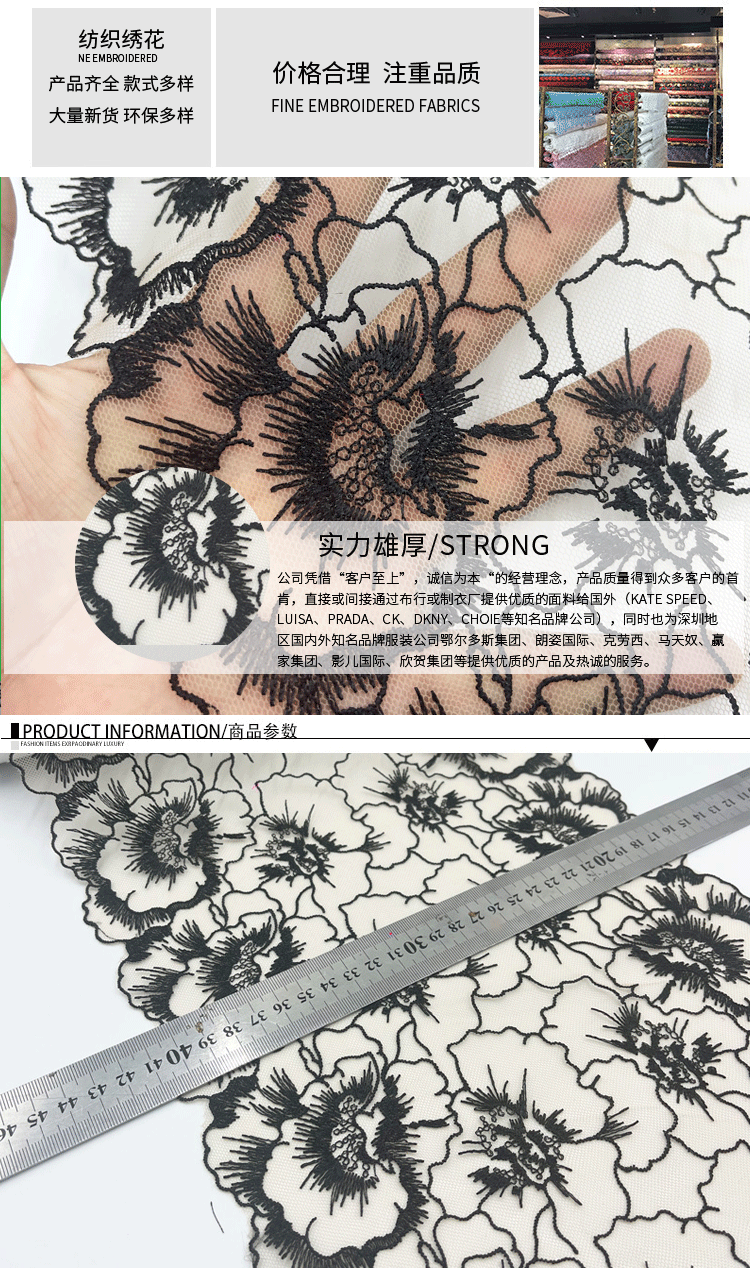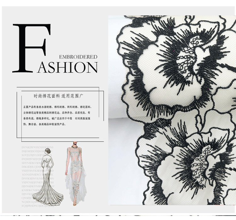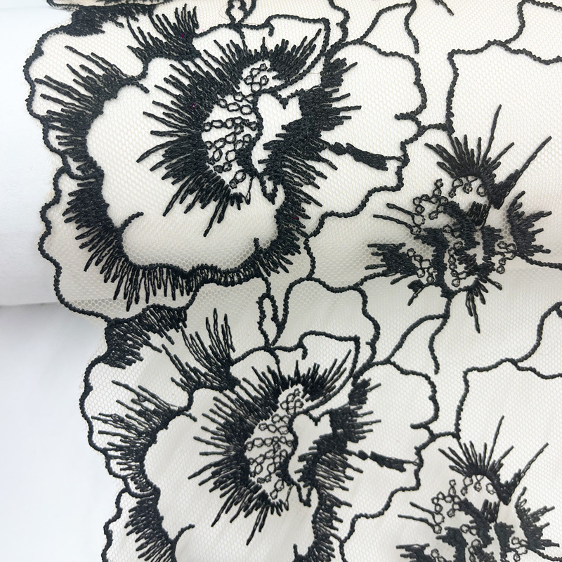 재고 폴리에스터 원사 압착 대형 꽃무늬 검정 망사 자수 레이스 속옷 부자재 도매 커튼 의류 액세서리스토어 가기