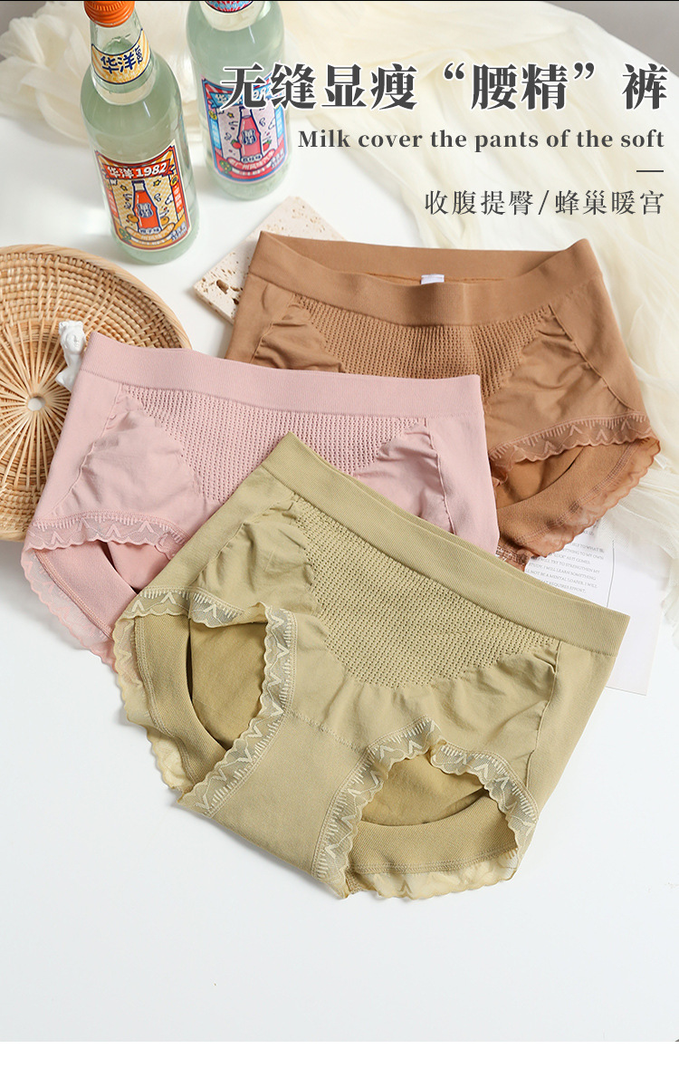 미제이 속옷 여성용 미드하이웨이스트 대형 사이즈 심리스 레이스 테두리 벌집 일본 스타일 여성용 인기 삼각팬티 반바지스토어 가기