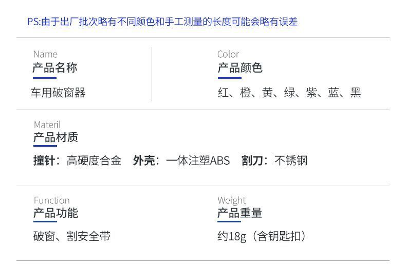 자동차 안전 망치 자동차 탈출 창 차단기 생활 망치 자동차 용품 완전한 책 1 초 휴식 유리 비상스토어 가기