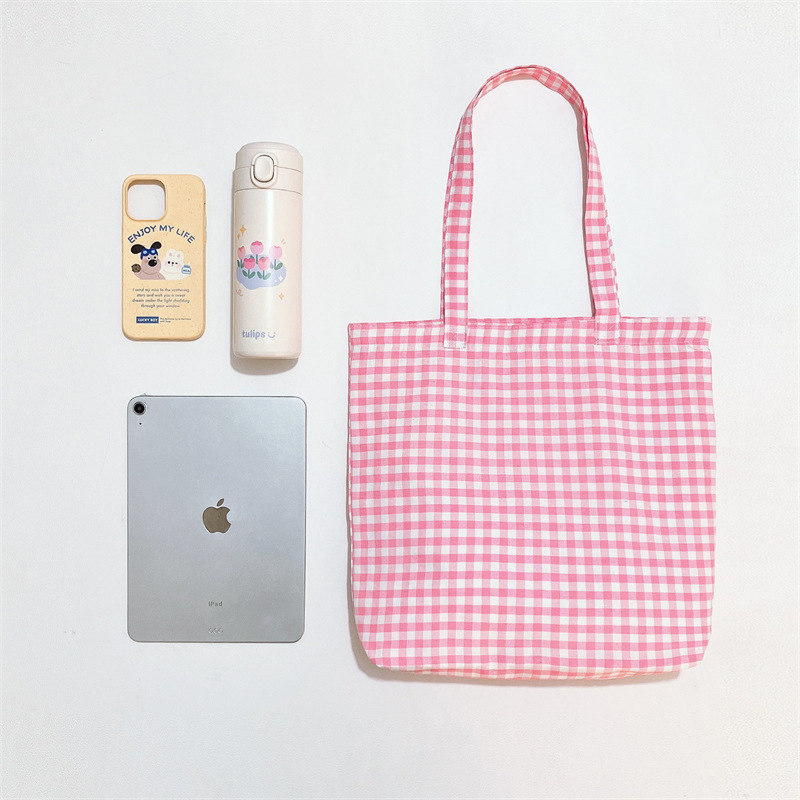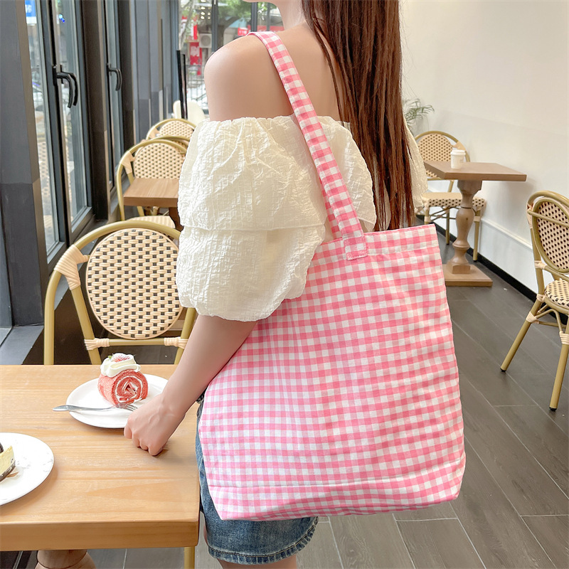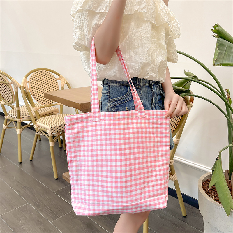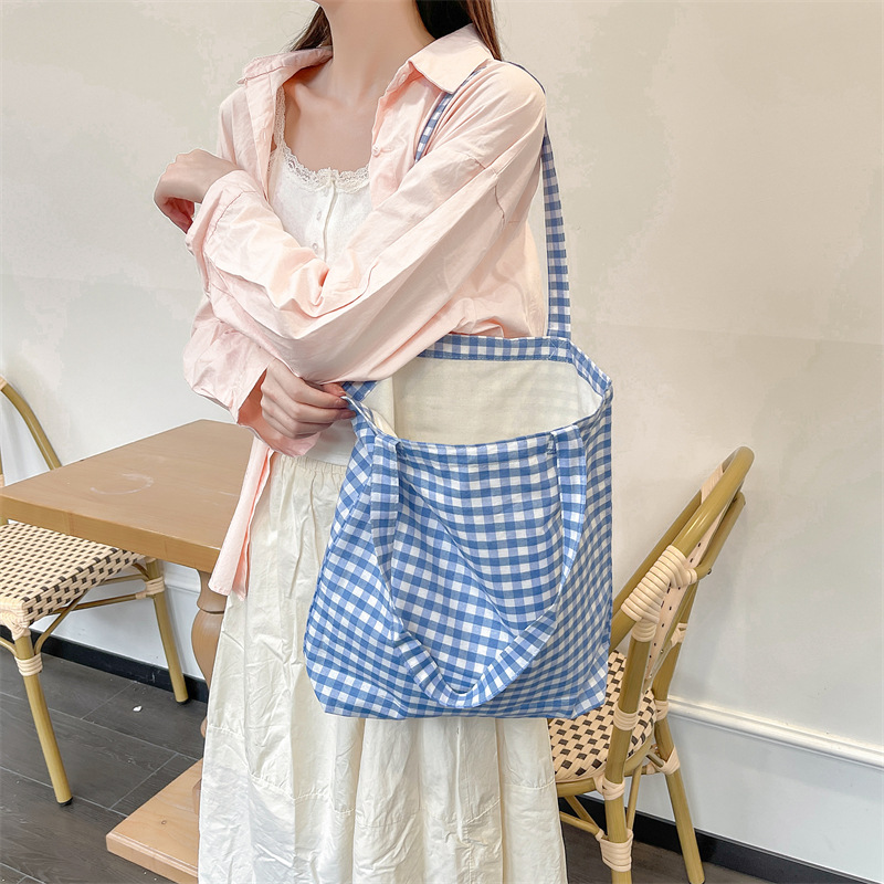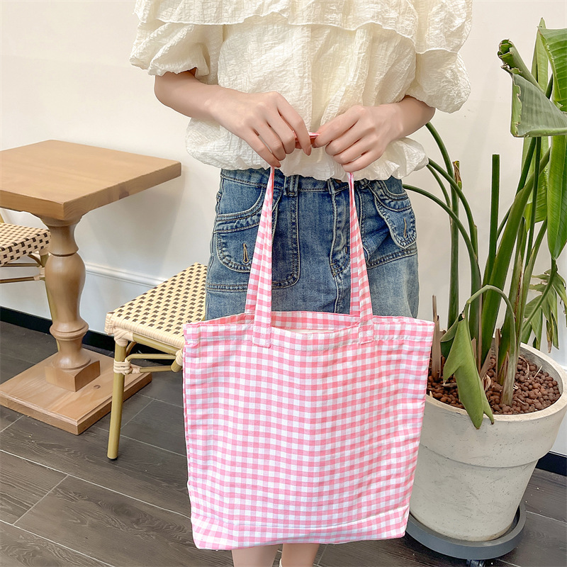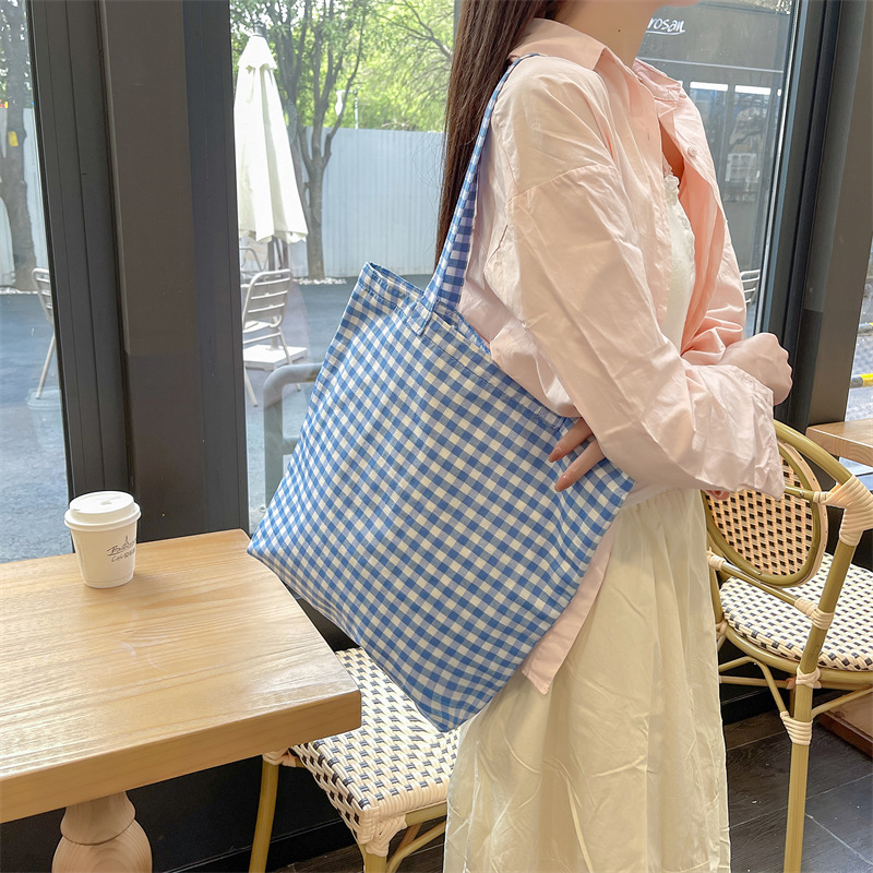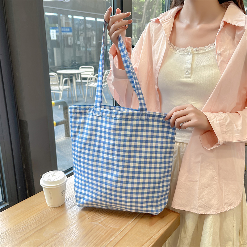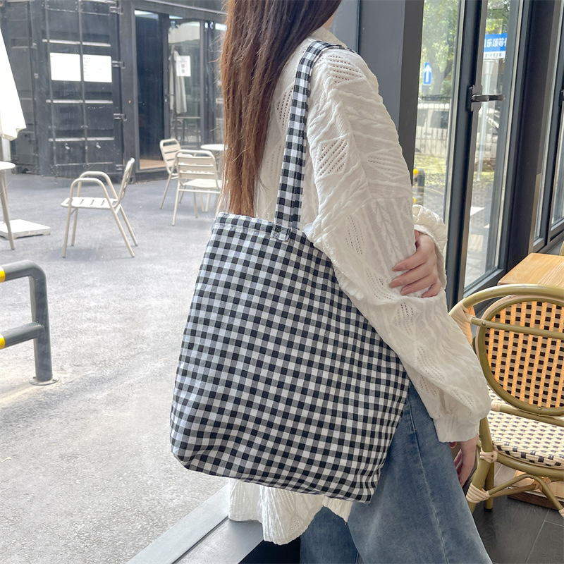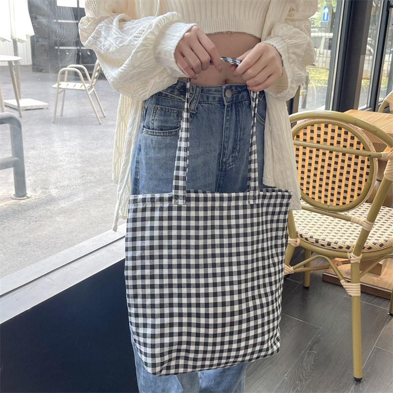 일본 대용량 격자 무늬 캔버스 가방 쇼핑백 학생 숄더백 학교 가방 빈티지 토트백 트렌디 토트백