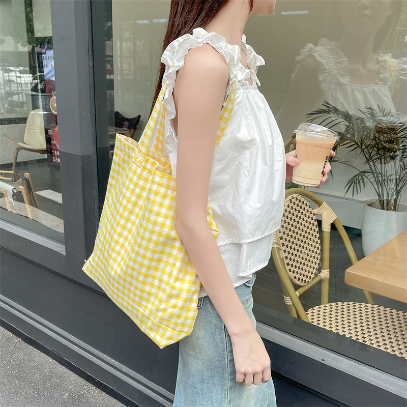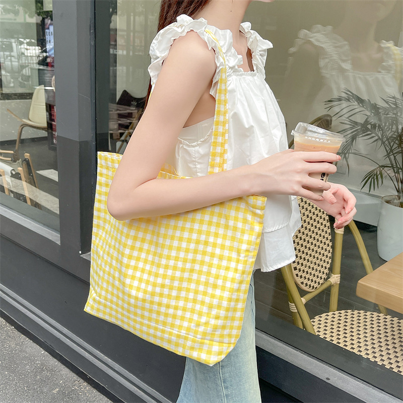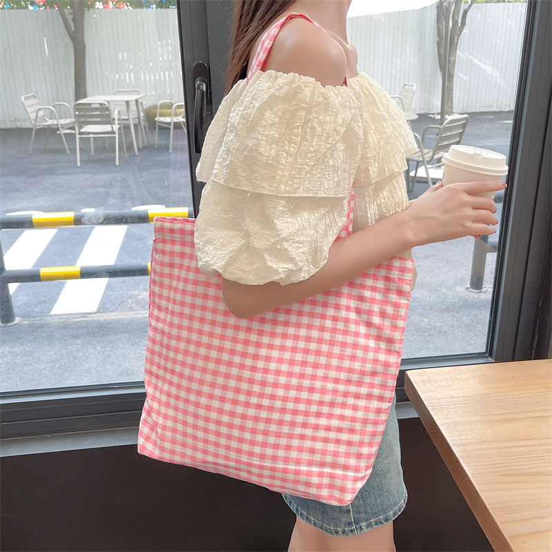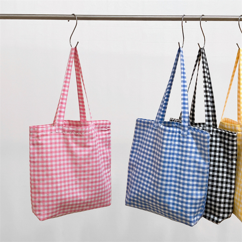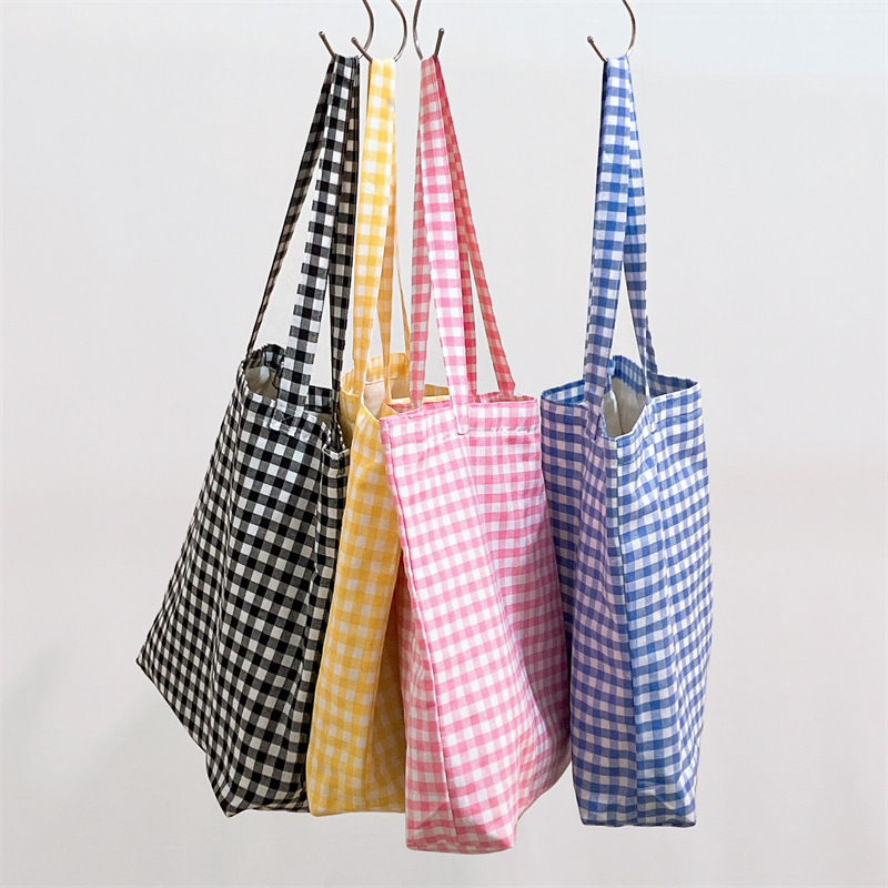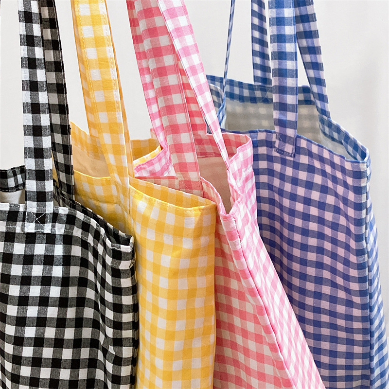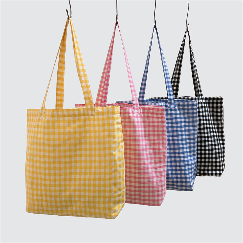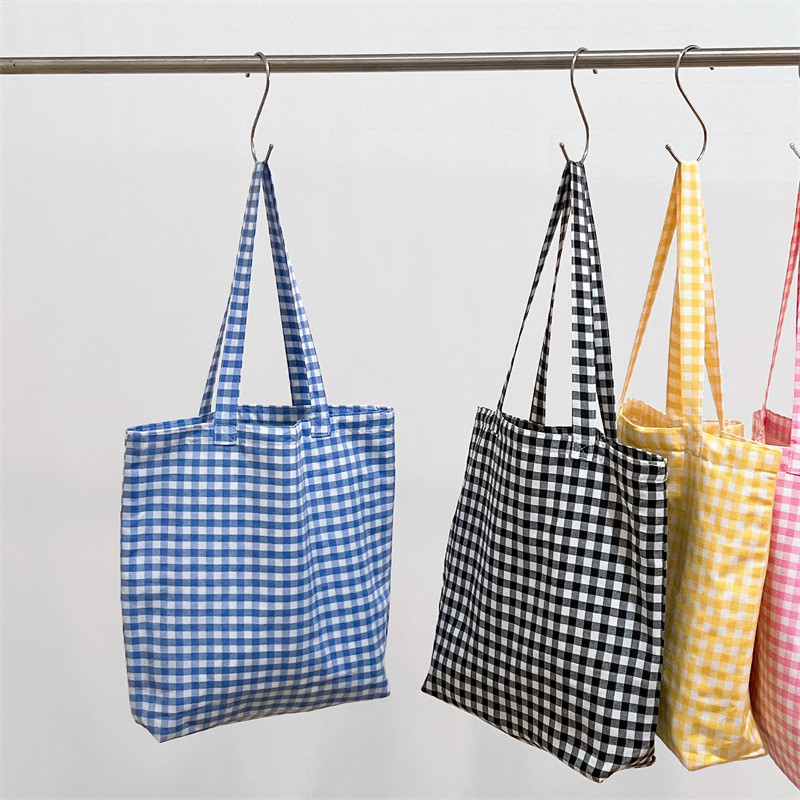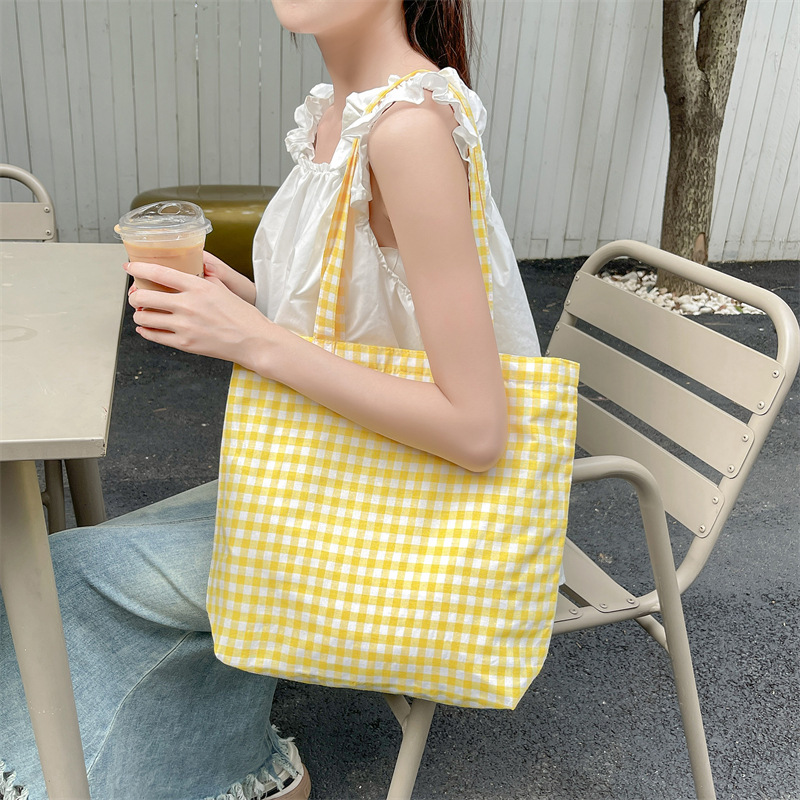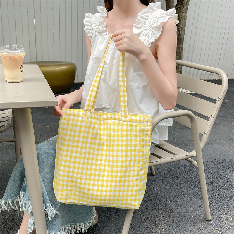 일본 대용량 격자 무늬 캔버스 가방 쇼핑백 학생 숄더백 학교 가방 빈티지 토트백 트렌디 토트백