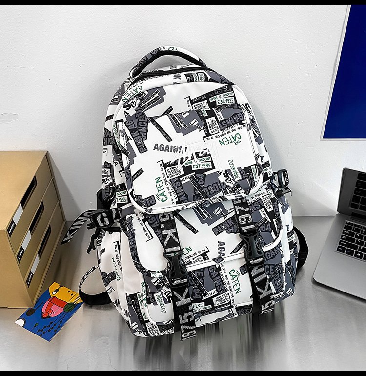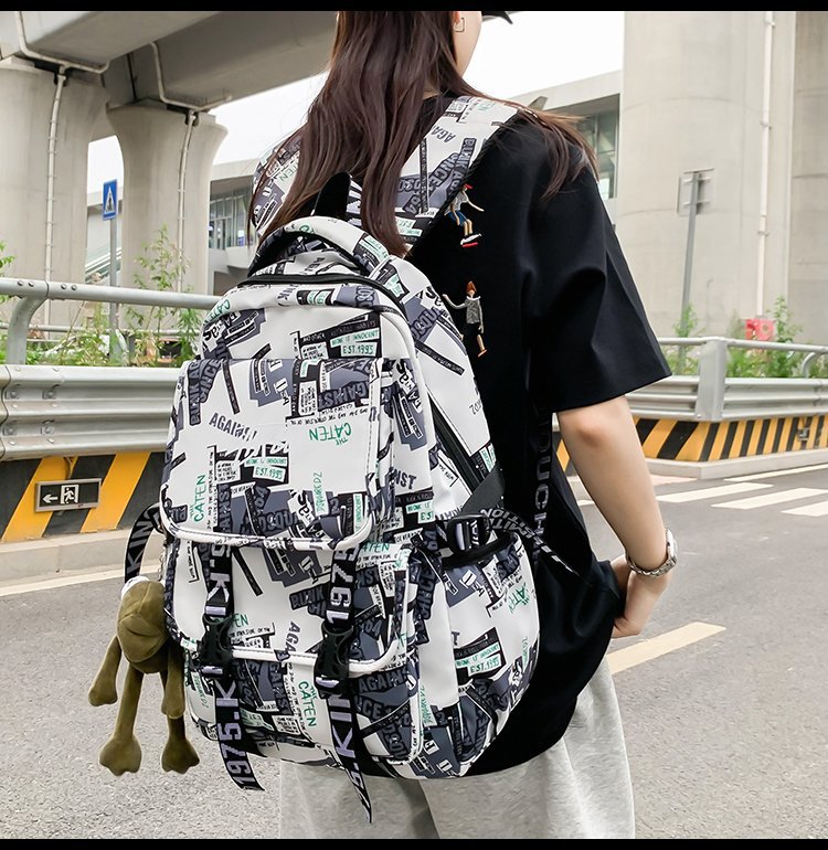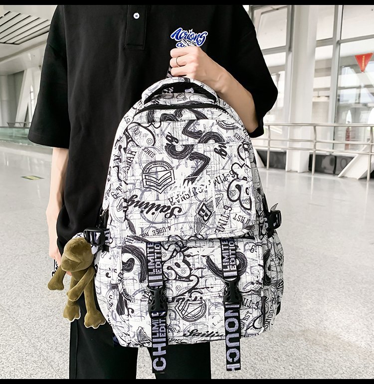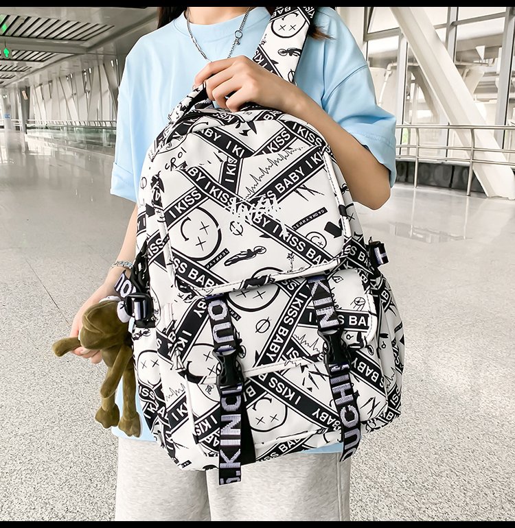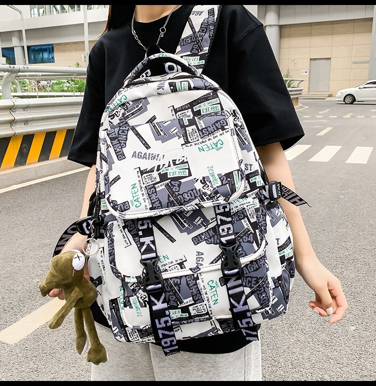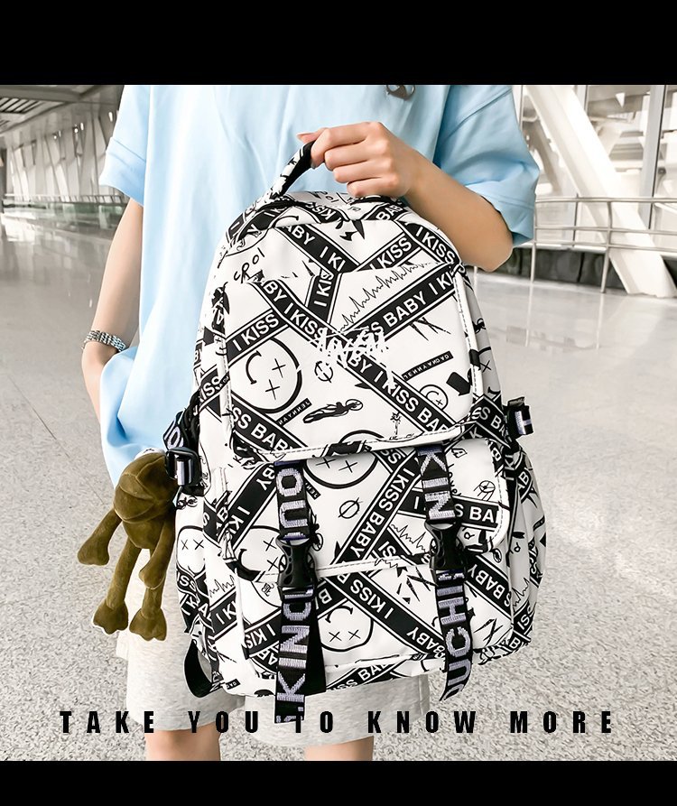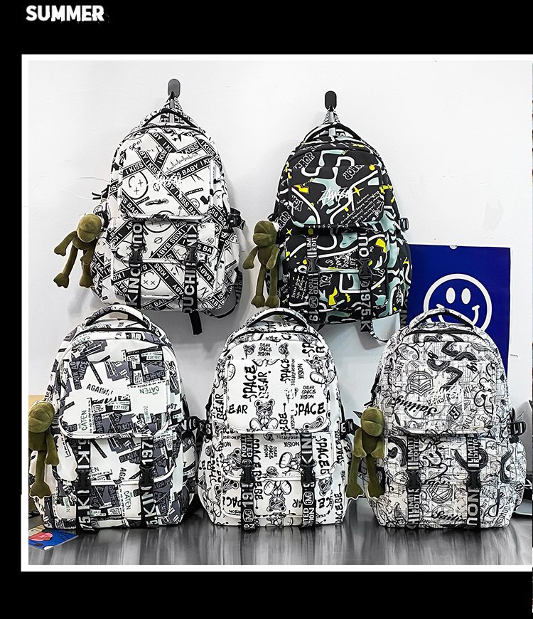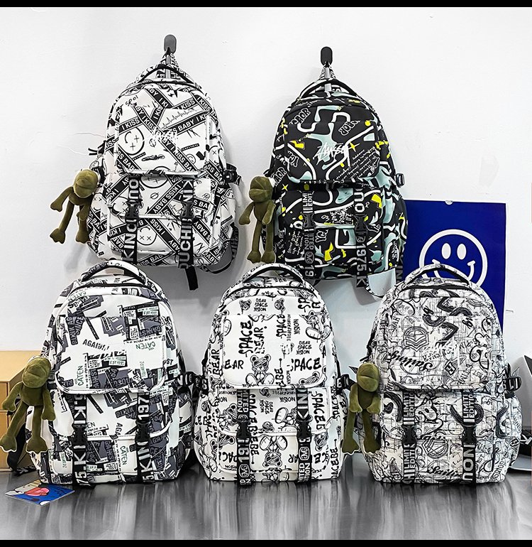 트렌디 한 멋진 패턴 편지 낙서 책가방 여자 고등학교 중학교 배낭 경량 대용량 남자 여행 배낭