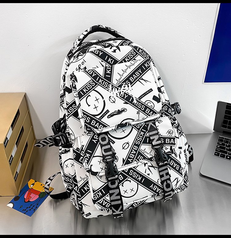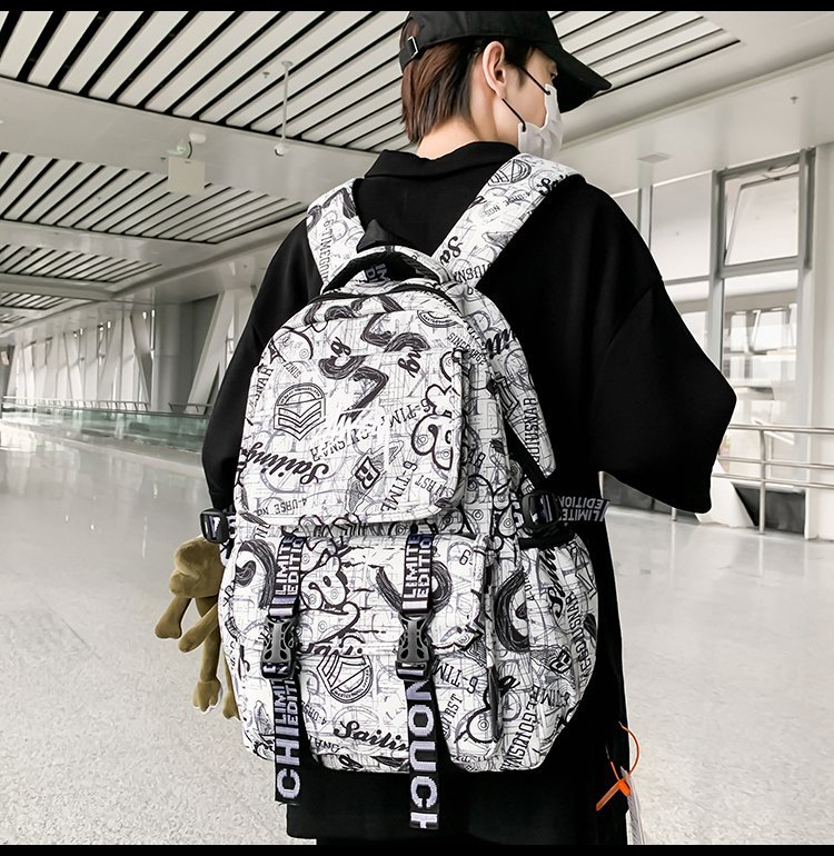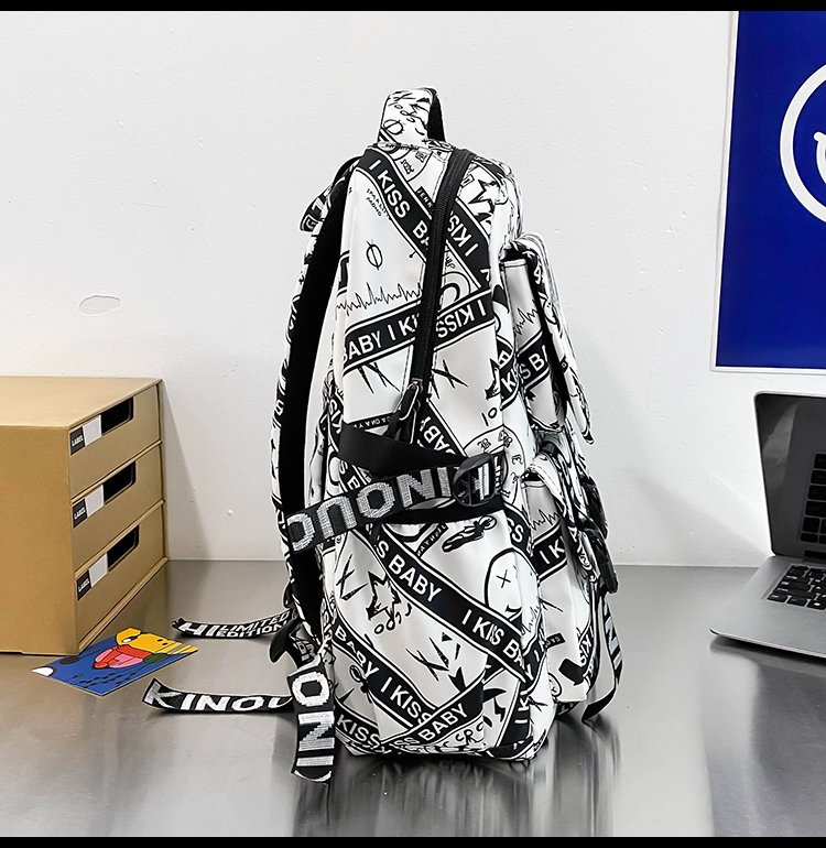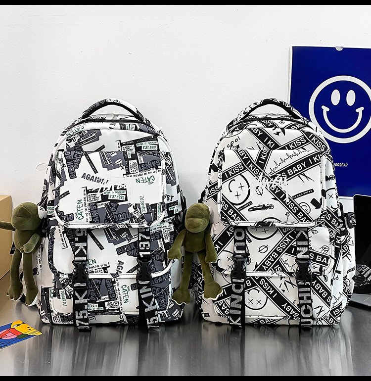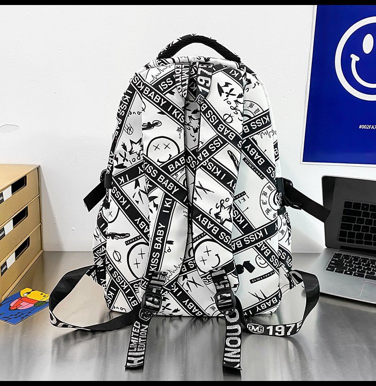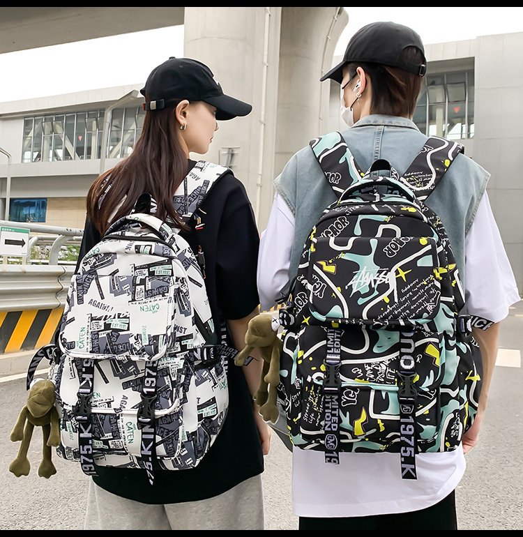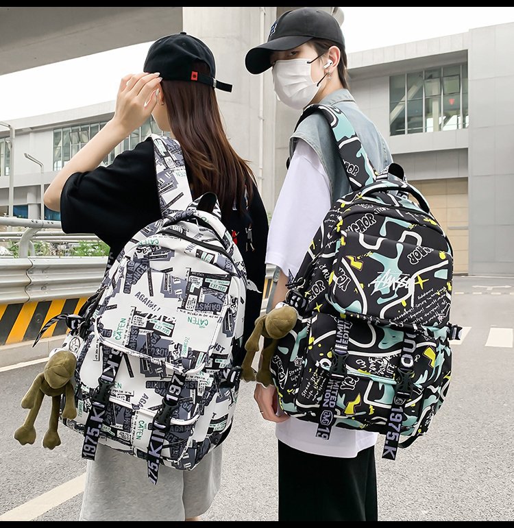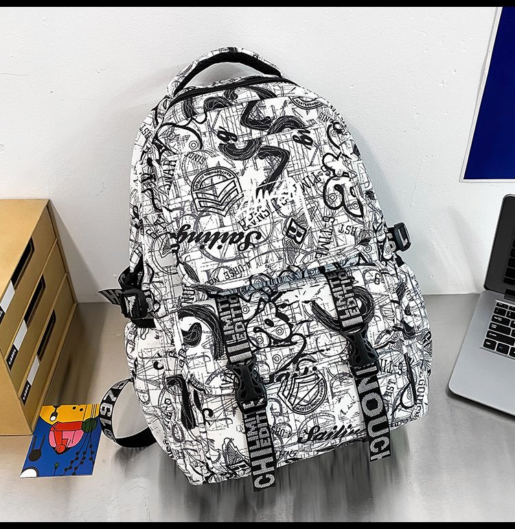 트렌디 한 멋진 패턴 편지 낙서 책가방 여자 고등학교 중학교 배낭 경량 대용량 남자 여행 배낭