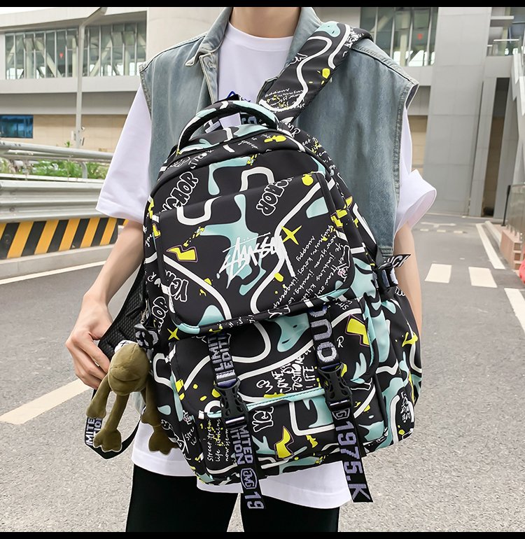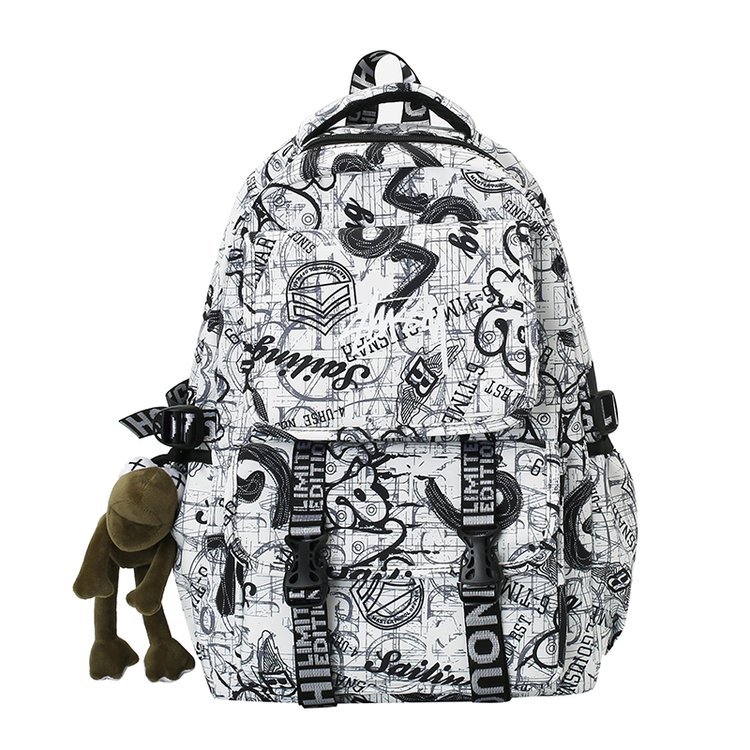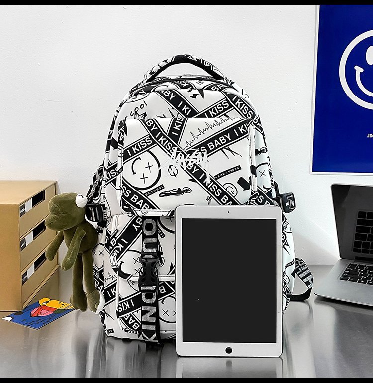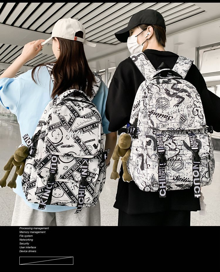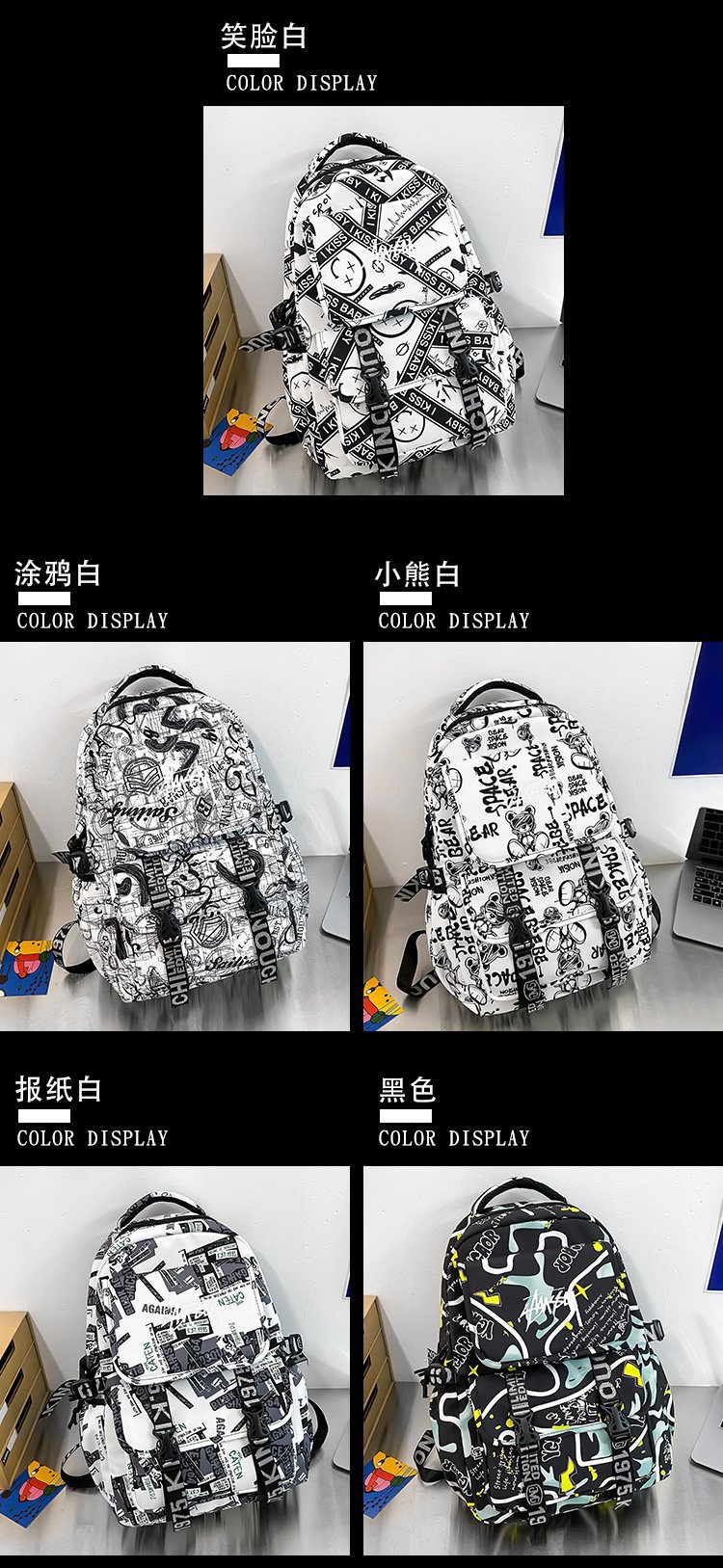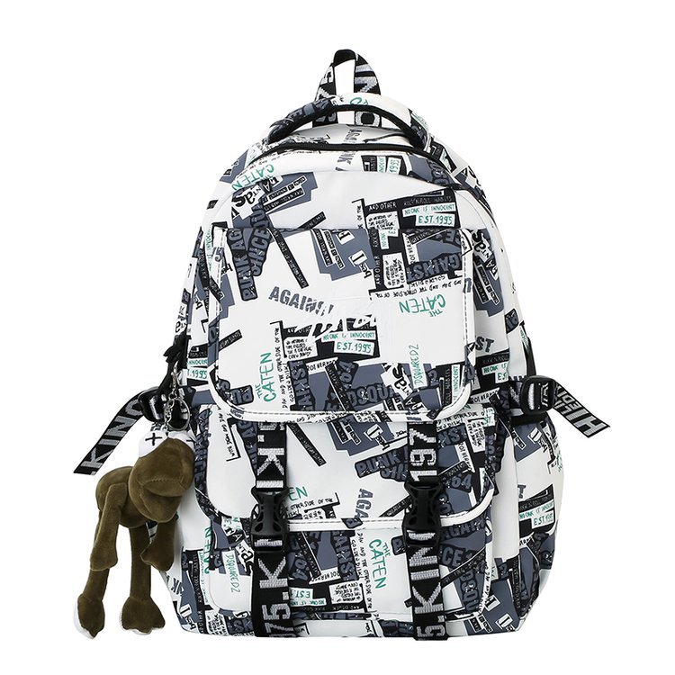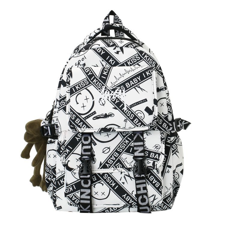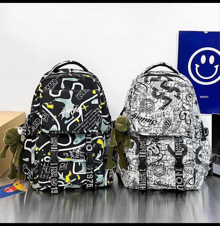 트렌디 한 멋진 패턴 편지 낙서 책가방 여자 고등학교 중학교 배낭 경량 대용량 남자 여행 배낭