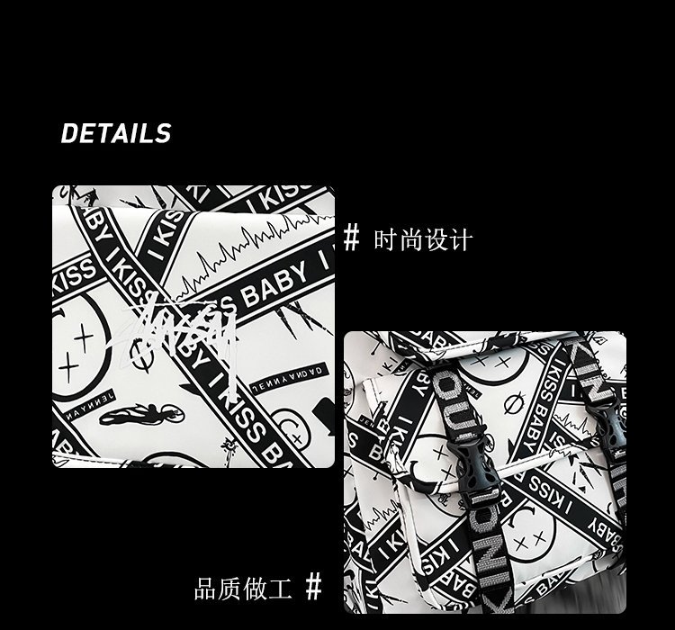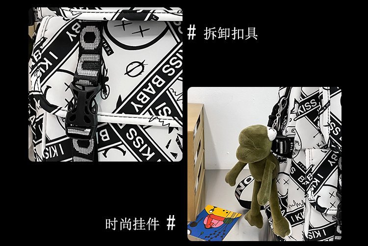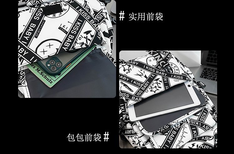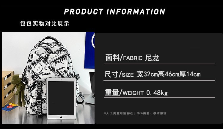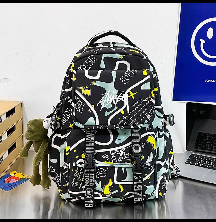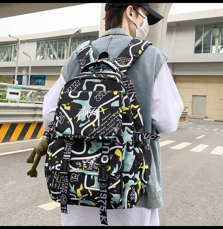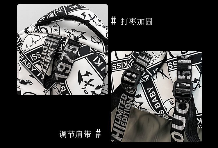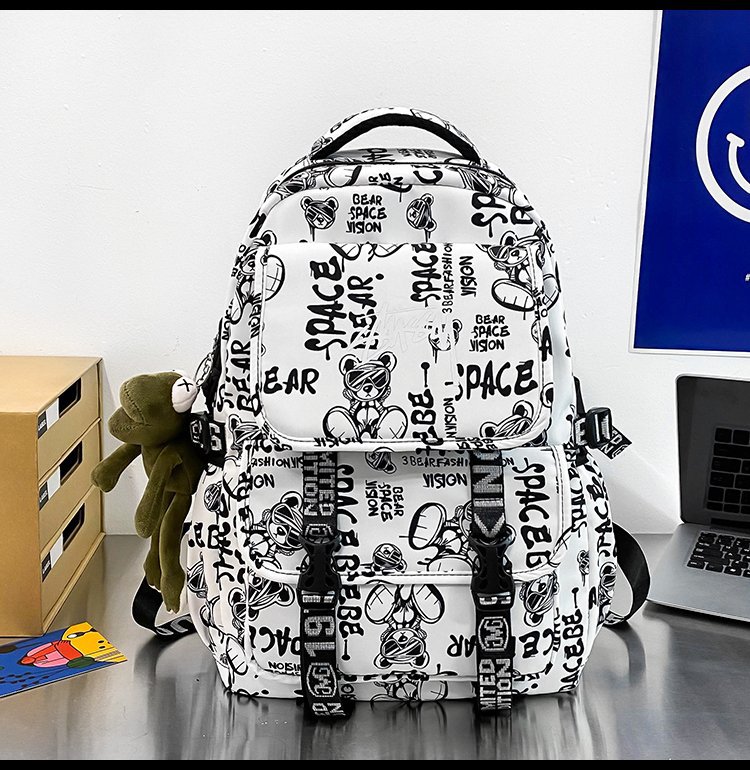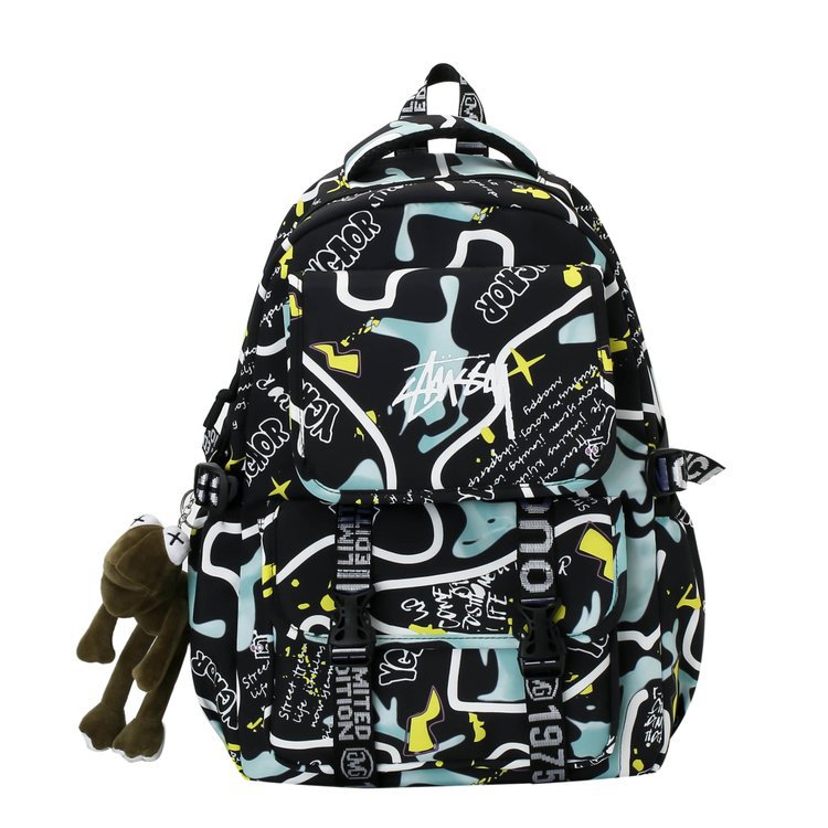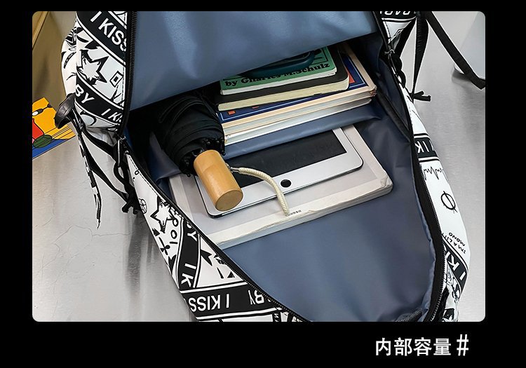 트렌디 한 멋진 패턴 편지 낙서 책가방 여자 고등학교 중학교 배낭 경량 대용량 남자 여행 배낭