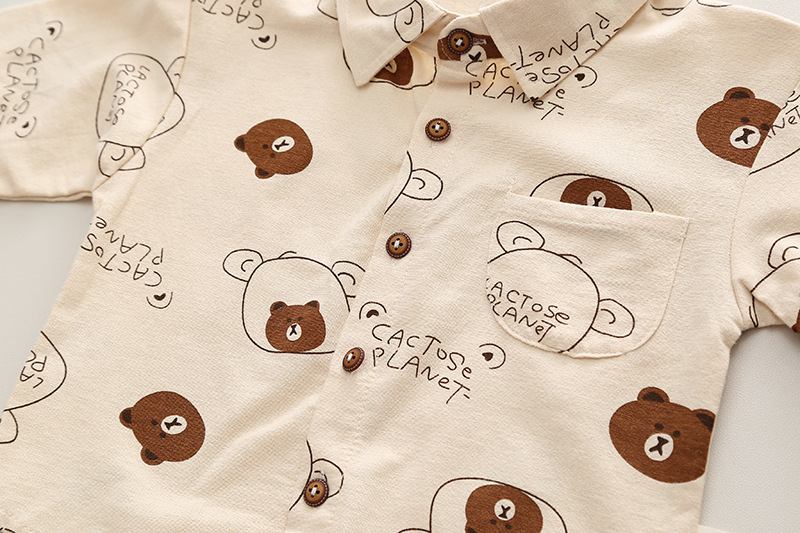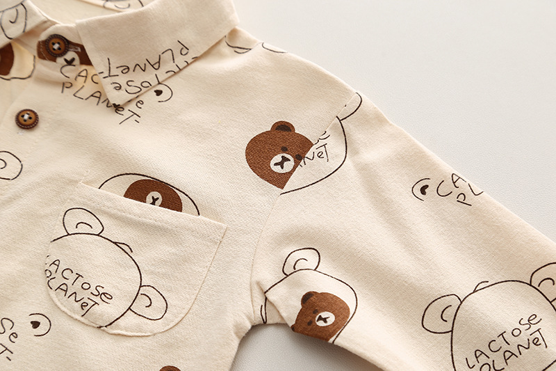 남성 아기 아기 봄 옷 셔츠 옷 가을 서양 스타일 전체 인쇄 곰 만화 잘 생긴 투피스 세트 어린 소년 아동복