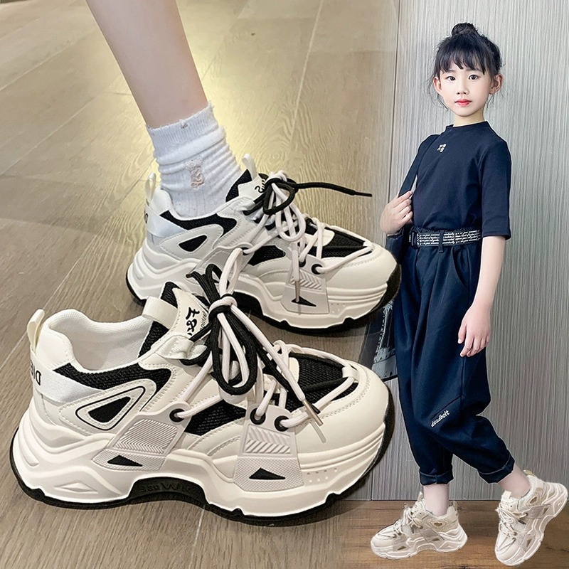 소녀 스니커즈 2024 새로운 봄 어린이 신발 패션 큰 어린이 아빠 신발 봄과 가을 어린 소녀의 그물 신발스토어 가기