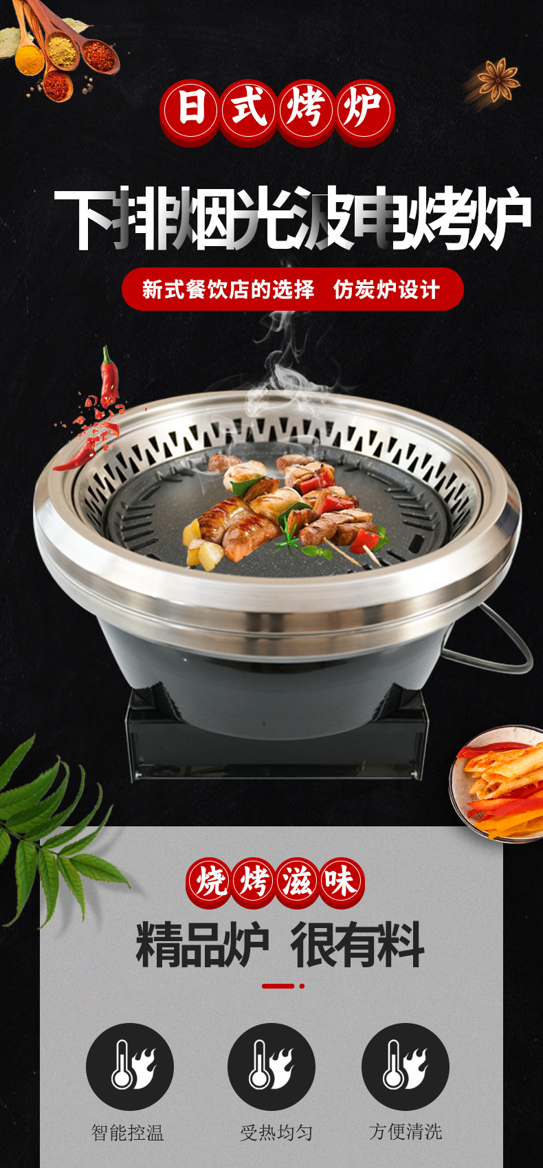 일본식 연기 배기 전기 오븐 무연 전기 오븐 상업용 상하 연기 배기 원형 내장형 스테인리스 한국식 셀프스토어 가기