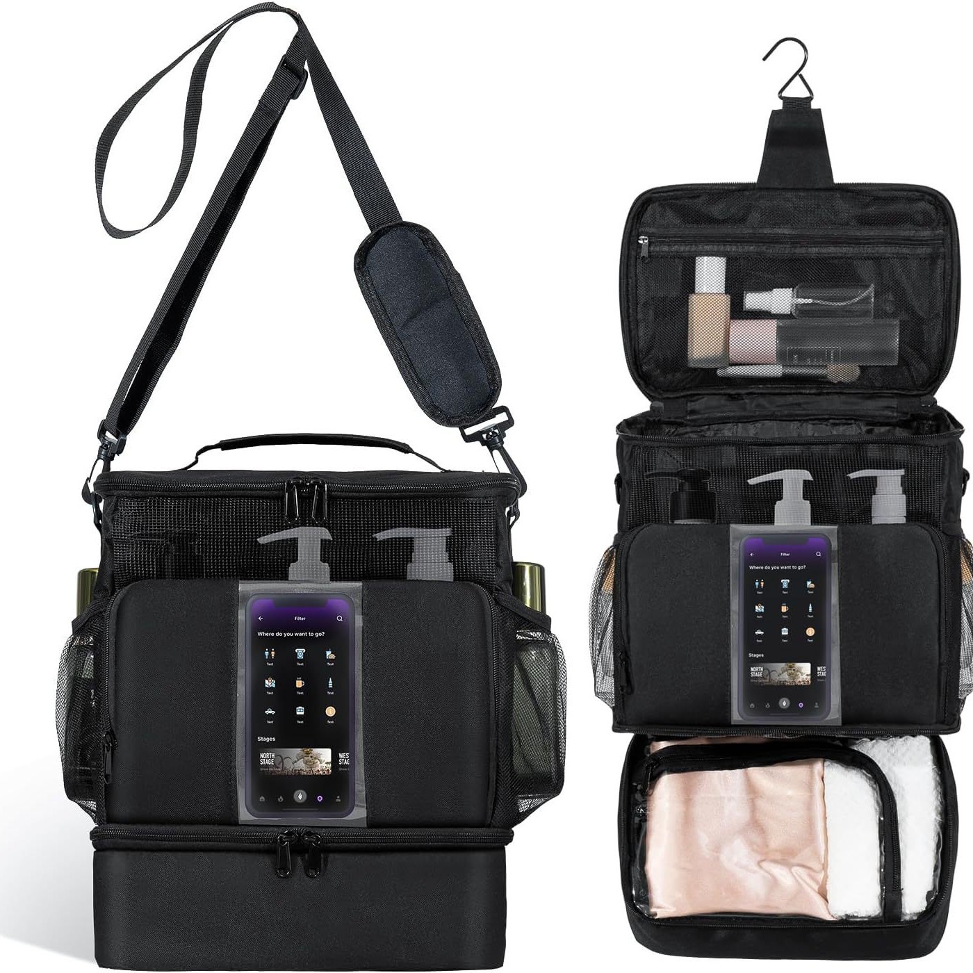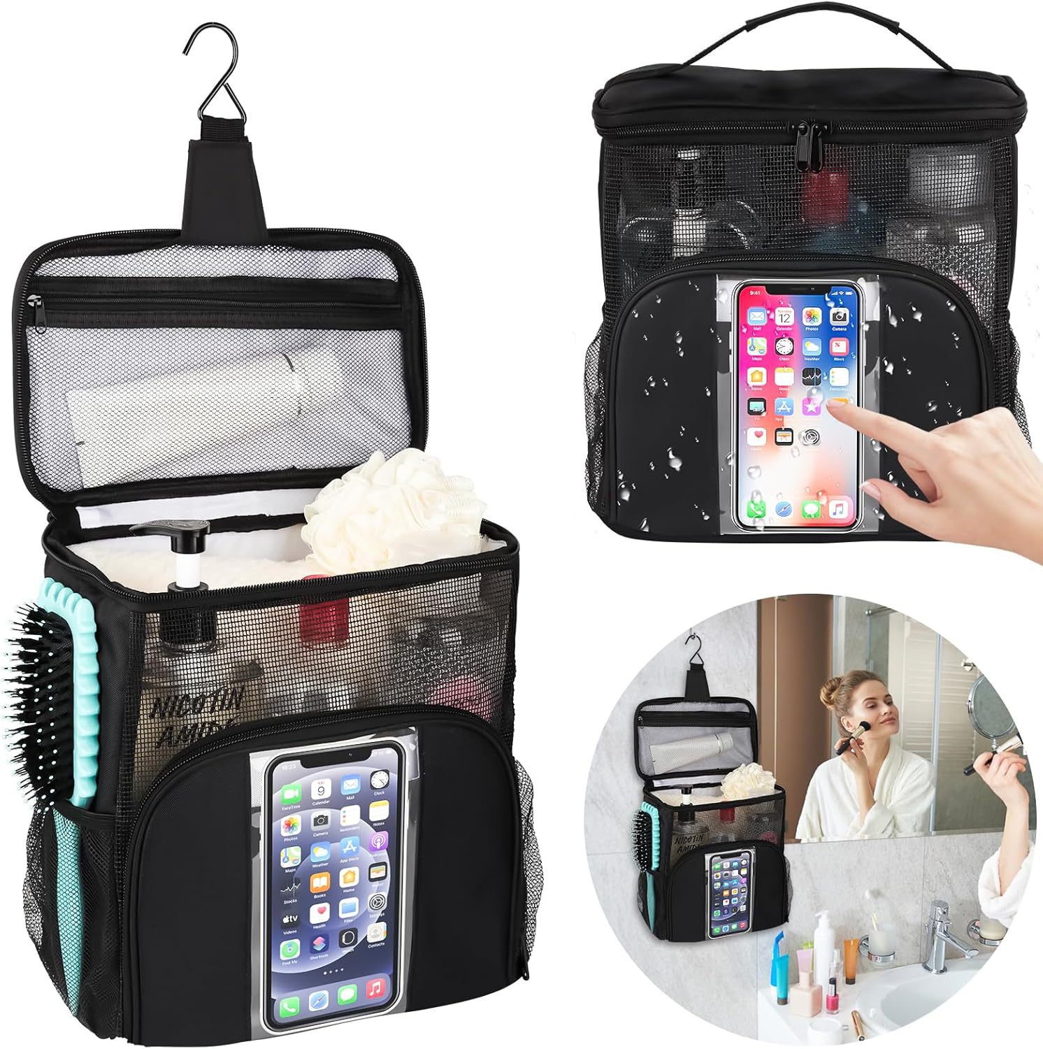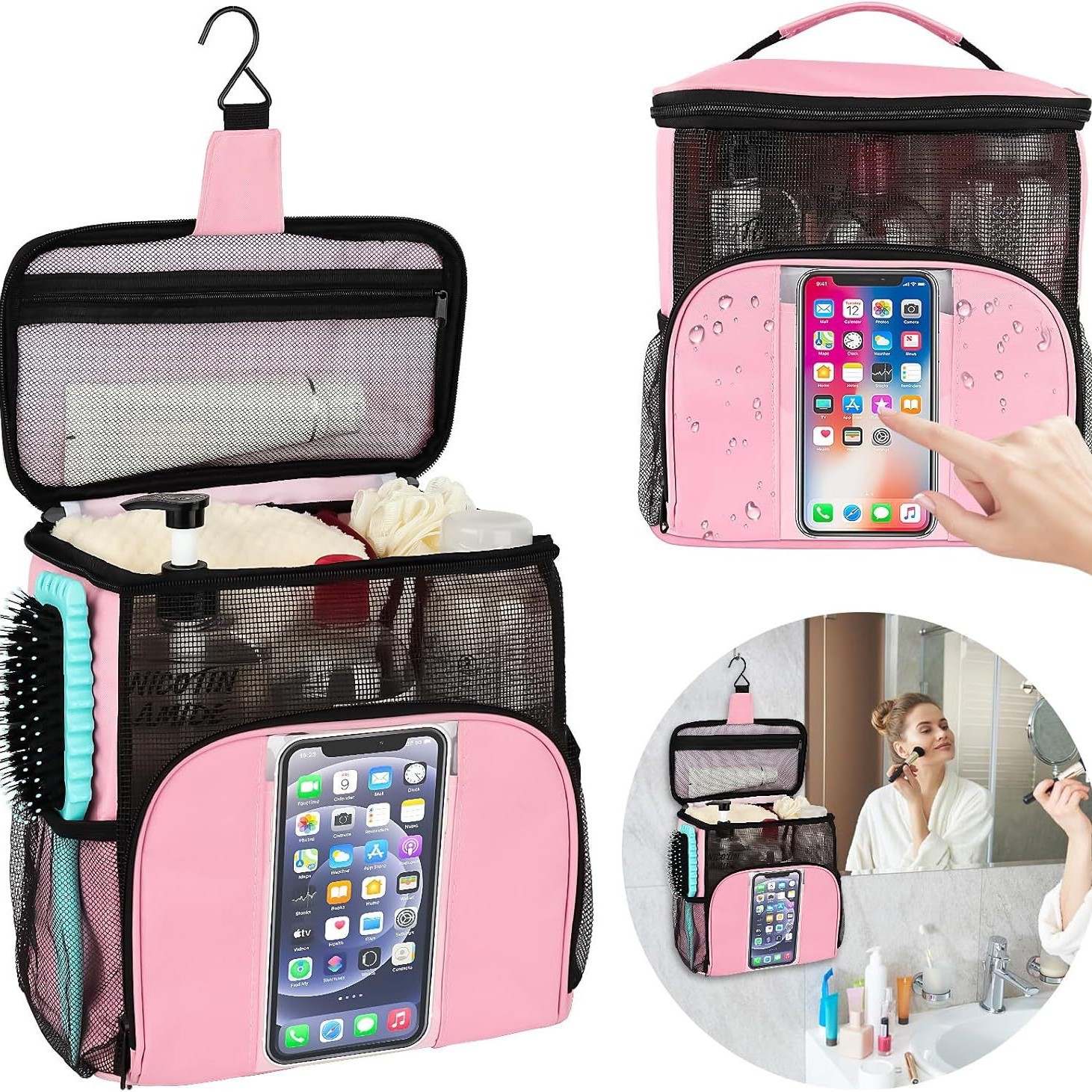 크로스보더 아마존 맞춤형 대용량 메쉬 워시 백 여성용 휴대용 화장품 생필품 여행 가방