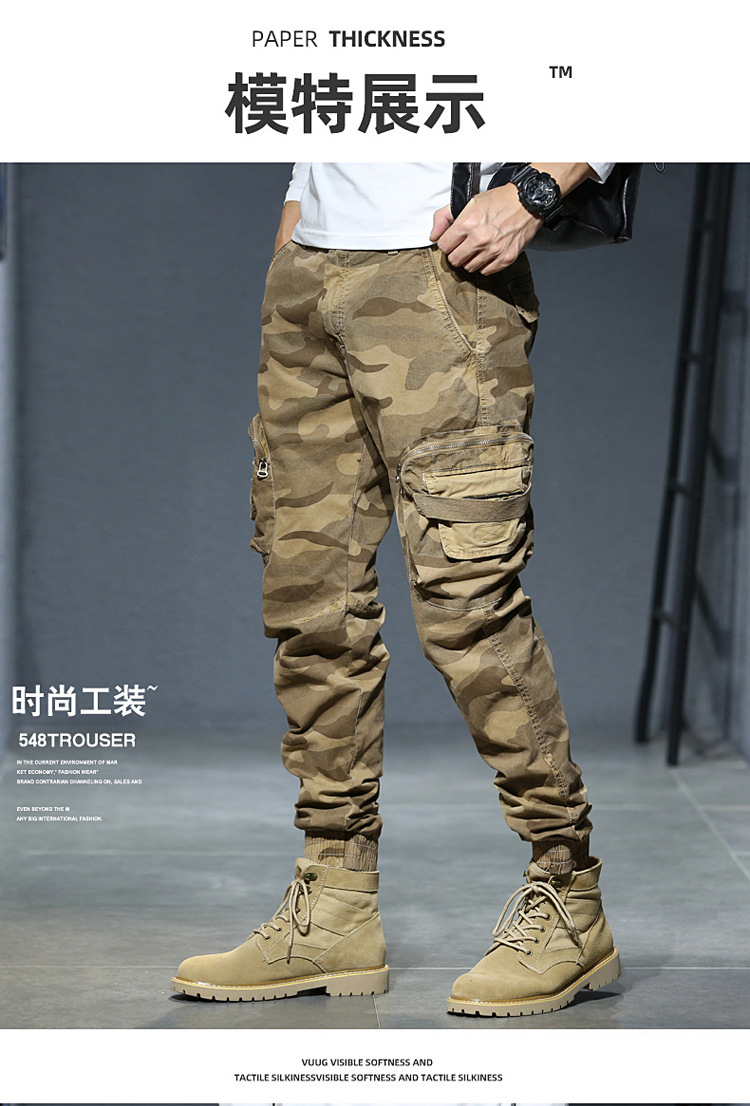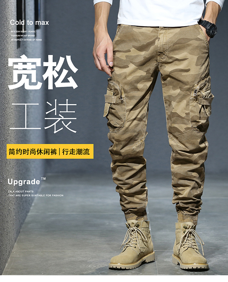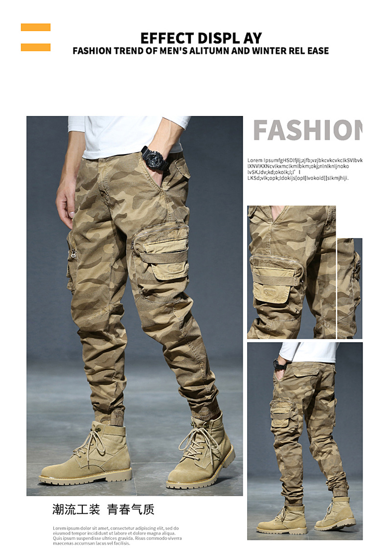 남성용 신상 레트로 카모플라주 캐주얼 멀티 포켓 조거 팬츠 신축성 있는 아웃도어 스포츠 9393스토어 가기
