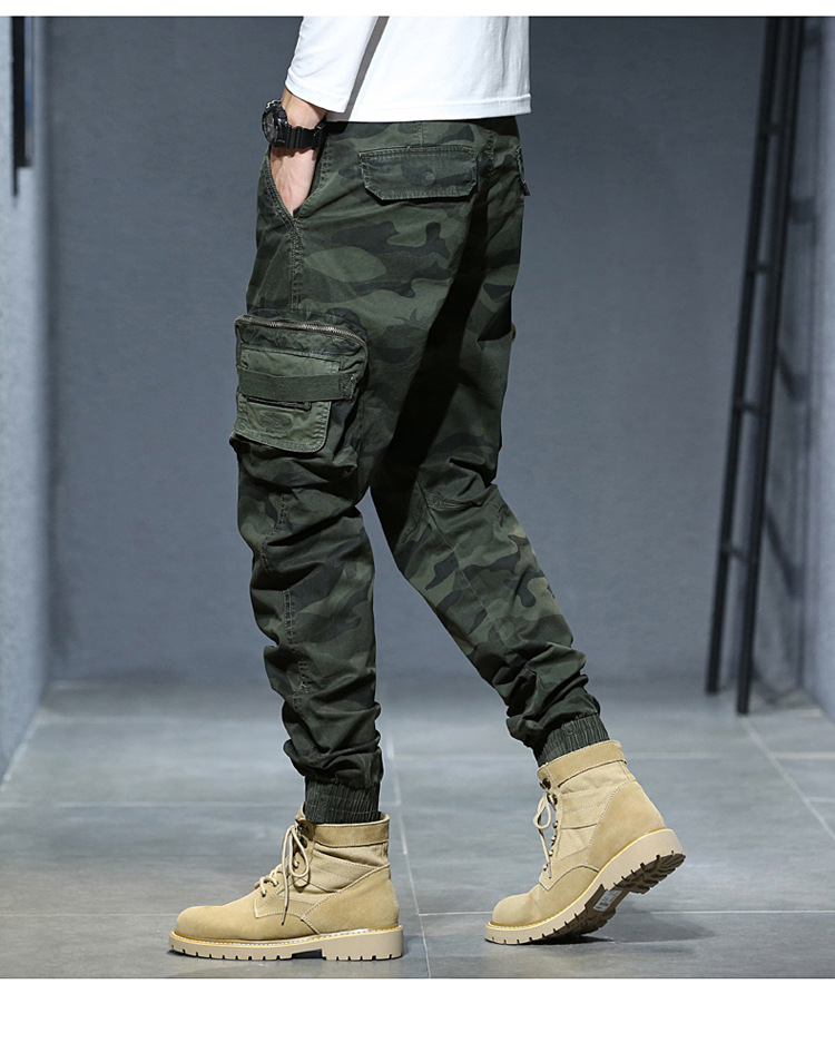남성용 신상 레트로 카모플라주 캐주얼 멀티 포켓 조거 팬츠 신축성 있는 아웃도어 스포츠 9393