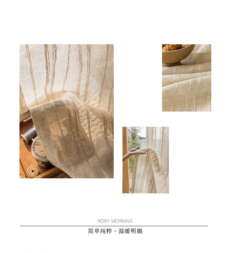 일본식 코튼 린넨 투명 린넨 스크린 일본 홈스테이 스타일 거실 찻집 스트라이프 코튼 린넨 커튼 거즈 커튼