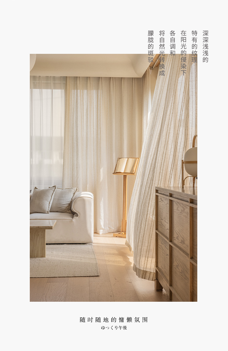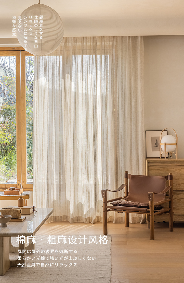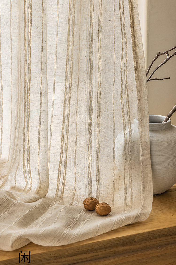 일본식 코튼 린넨 투명 린넨 스크린 일본 홈스테이 스타일 거실 찻집 스트라이프 코튼 린넨 커튼 거즈 커튼스토어 가기