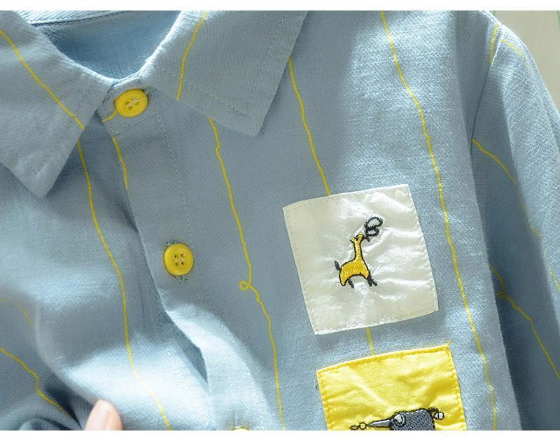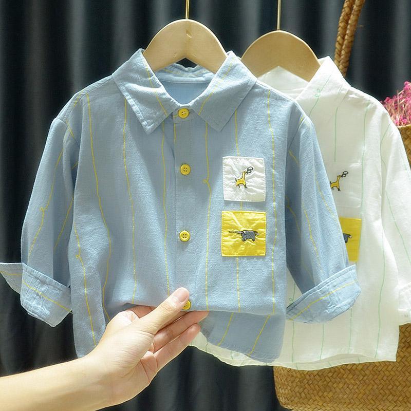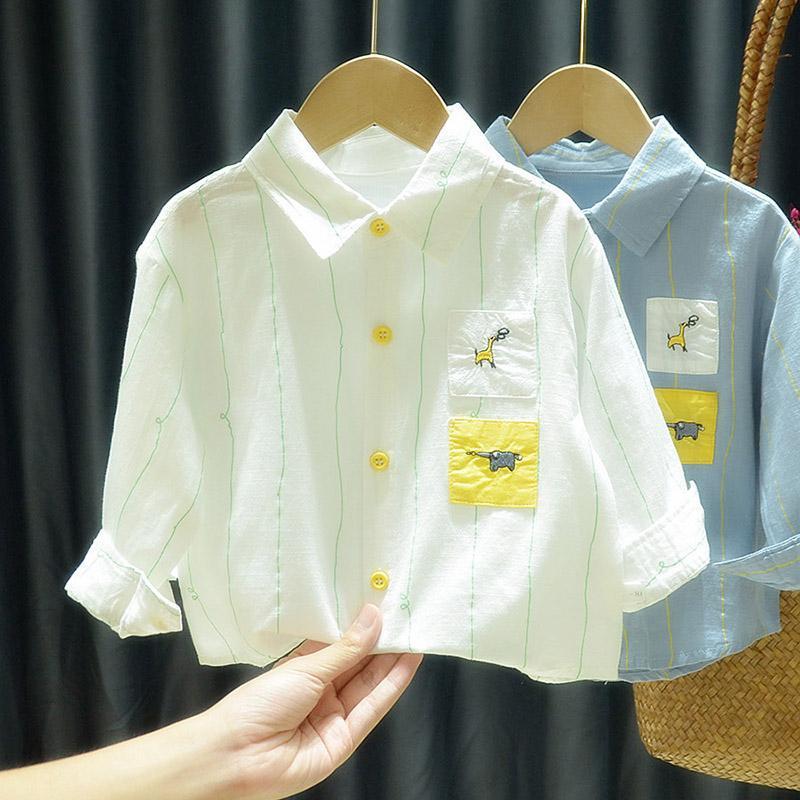 새로운 소년 셔츠 한국 모든 경기 셔츠 2023 봄 어린이 만화 세련된 셔츠 어린이 패션 의류스토어 가기