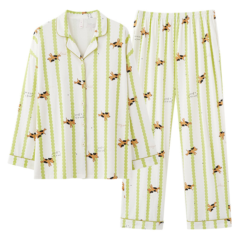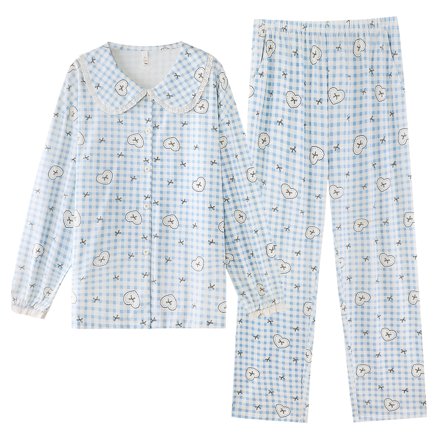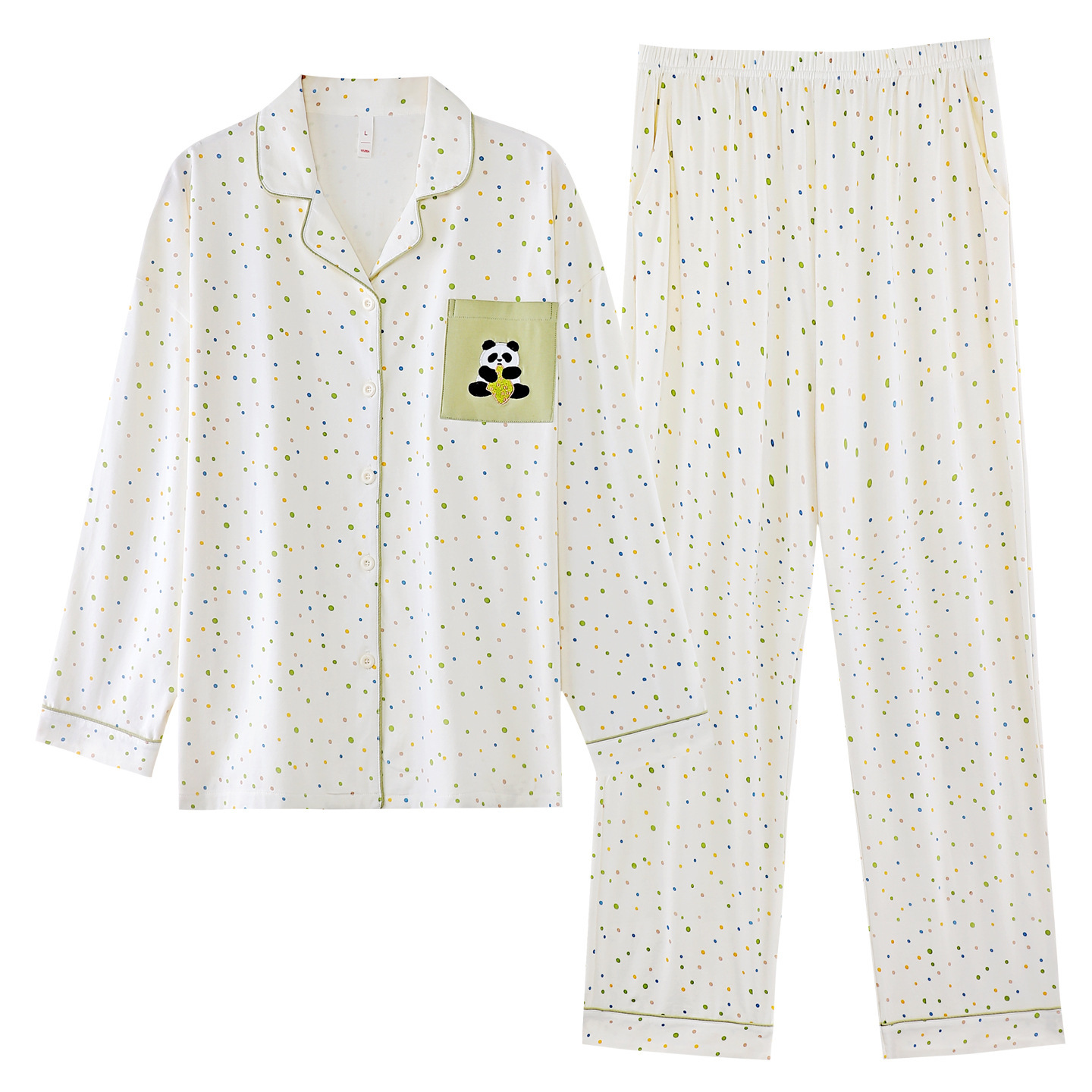 [깨진 코드 복지] 봄과 가을 코튼 풀 랙 코튼 애호가 파자마 여성 긴팔 남성 홈 의류