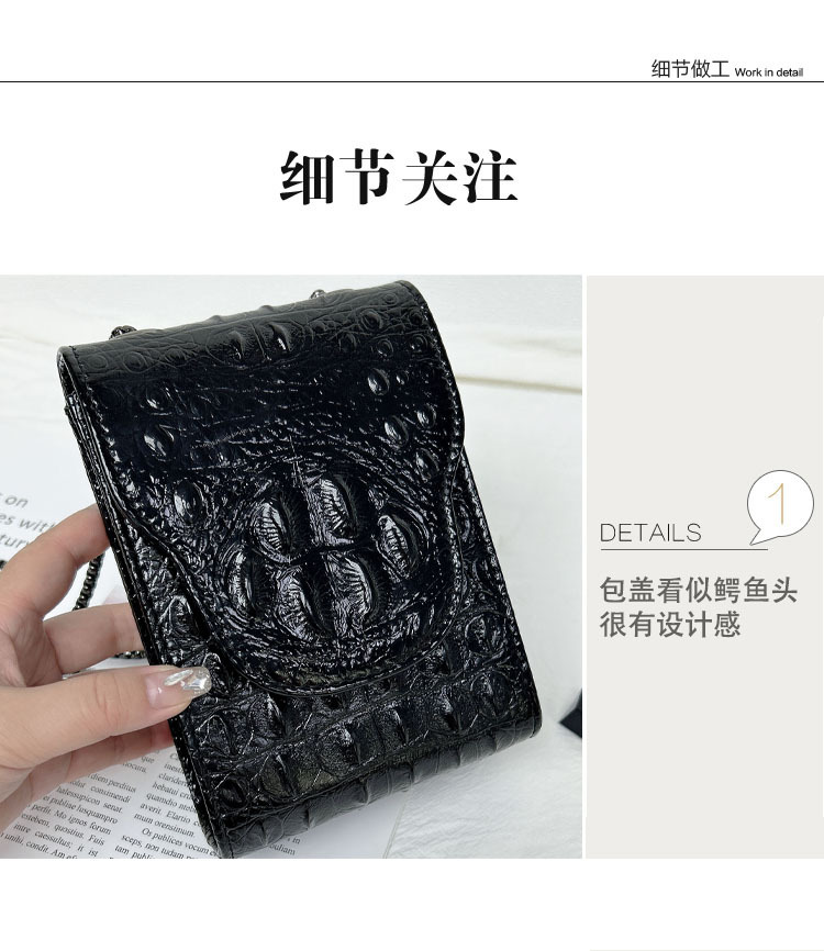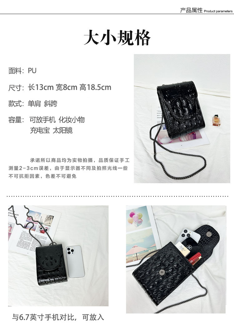 질감 악어 패턴 휴대 전화 가방 미니 가방 2023 가을과 겨울 새로운 고급 체인 숄더 크로스 바디 백